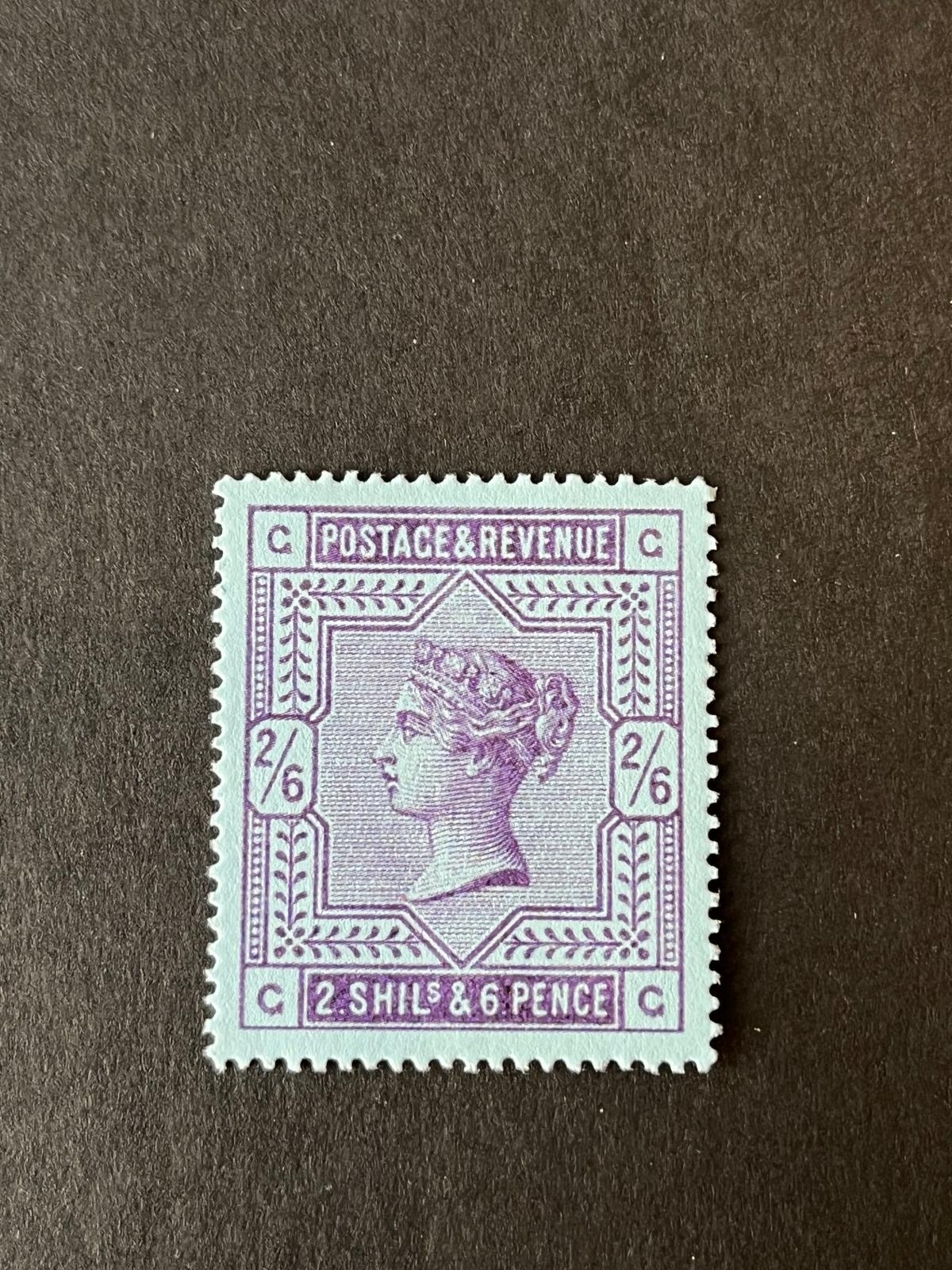 GB 1883 QV SG175 2/6 lilac stamp on blued paper mint MNH Facsimile / Replica / Forgery ( original would have high cat value ) a/f