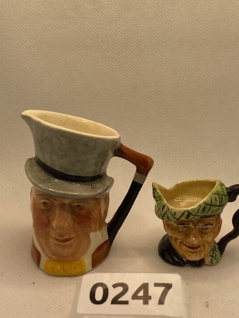 ‘Old Mac’ miniature hand painted toby jug 4cm tall with a Mr Micawber hand painted 7.5cm small toby jug by Lancaster and Sandland, Hanley, Stoke-on-Trent ‘The Potteries’