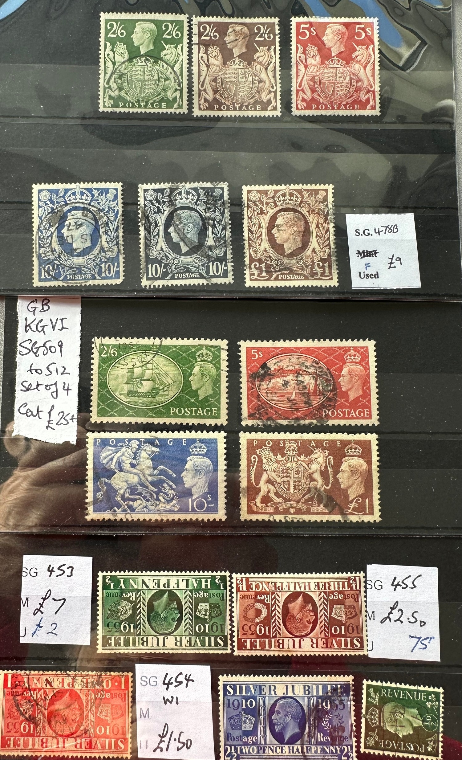 GB KGVI mainly used stamps sets on stock cards inc. mint inverted w/m (? unchecked) and clear Sussex cancel noted