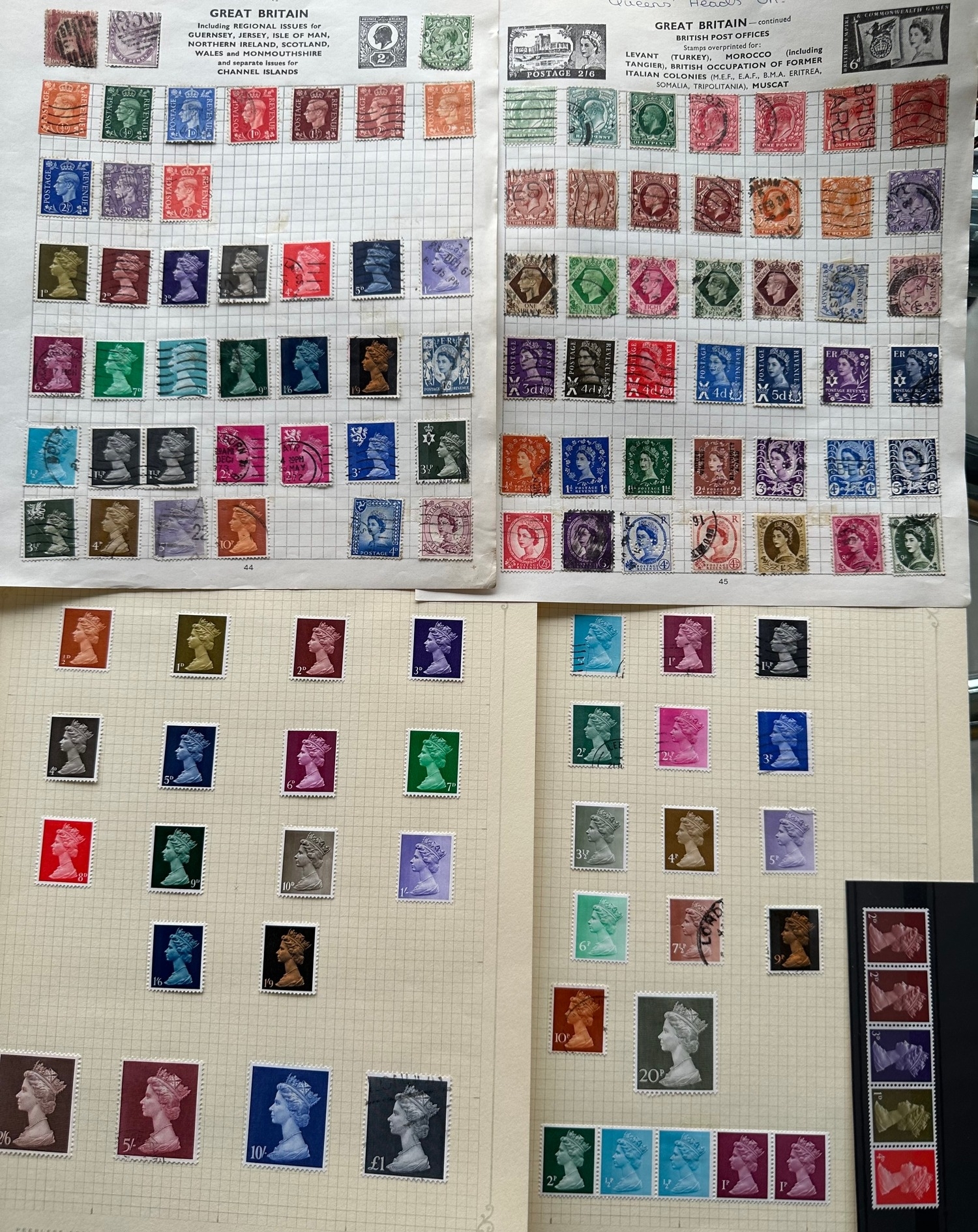 GB mint and used defin stamps selection from QV penny red, KG,. Royal Cypher, regionals to QEII Machins inc. strips. Phosphor and Perfins noted. High values / large format