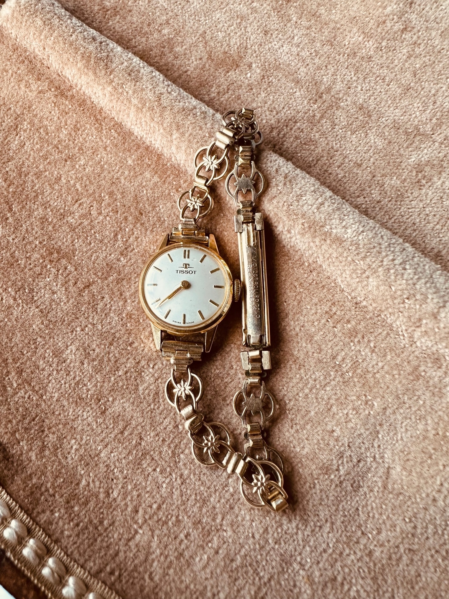 TISSOT ladies gold plated watch with rolled gold bracelet, signed crown, working when listed but no guarantees given or implied
