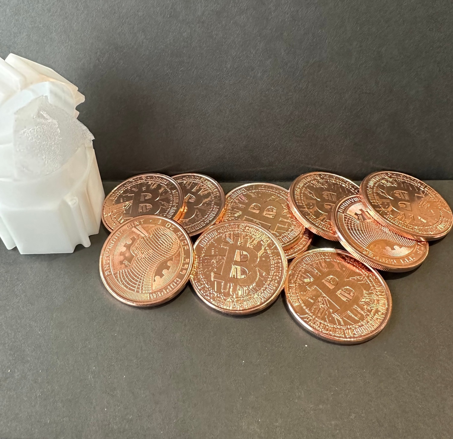 Tube of 10 fine mint 0.999 fineness copper Bitcoin tokens (like coins)