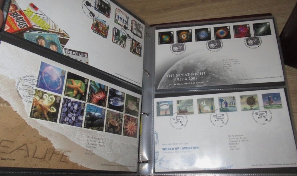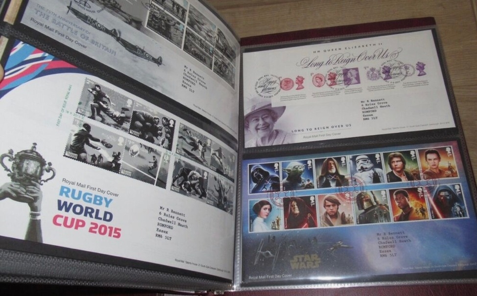 UK GB QEII FDC Collection from 2000-2016, 268 first day covers ( of stamps and mini sheets) in 4 Royal Mail binders including Star Wars, The Beatles, Millennium, Military / Air Royalty etc.