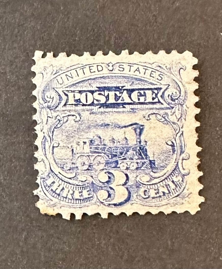 rare US / USA early 3c blue / ultramarine locomotive stamp, mint no gum, high cat value