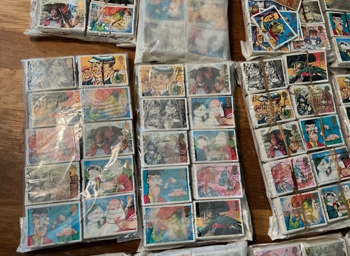 16,000 Royal Mail Greetings ‘Smiles’ stamps ( used out of c.1990’s stamp booklets ) in sets of 10 x 100 stamps in each bundle. Great speculative lot. High cat value (Qty) UK GB