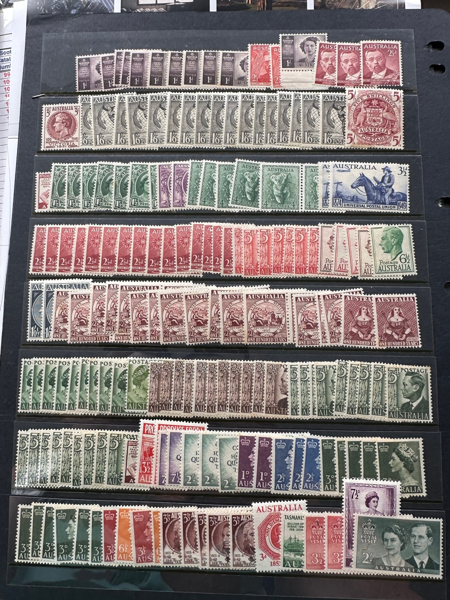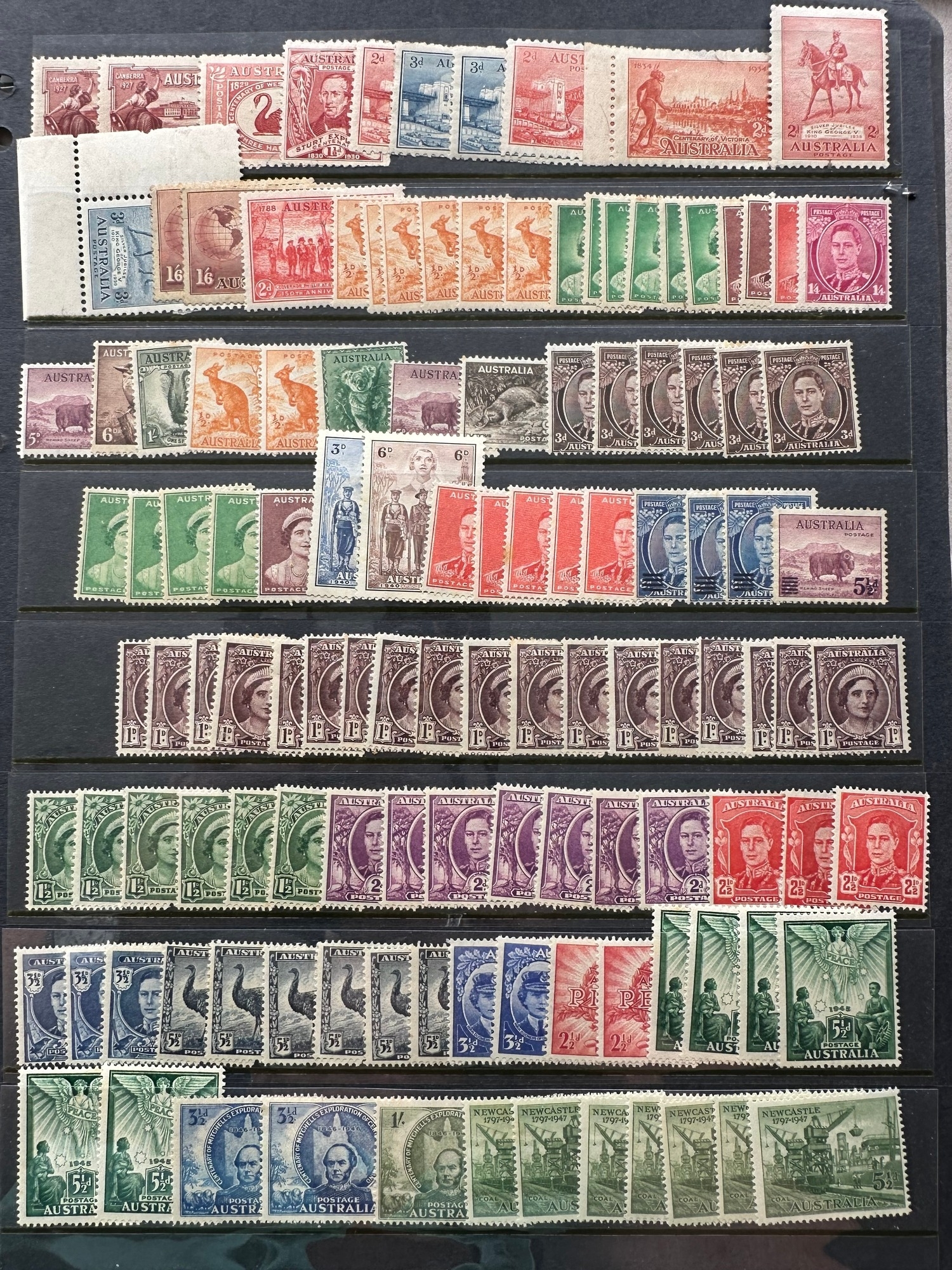 Large selection of mint commonwealth Australian stamps on 2 Hagner sheets (3 sides), duplication, high cat value �625 (c.375) KGV, KGVI ex dealer stock