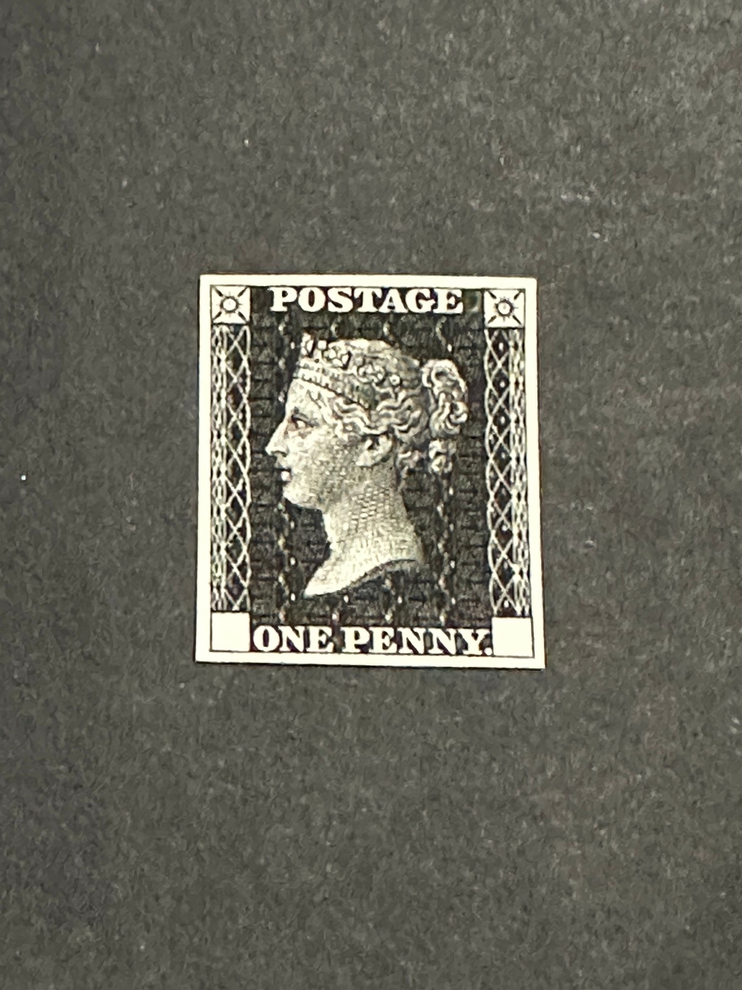 GB QV 1840 Penny Black stamp mint REPRODUCTION ( copy ) having 4 clear margins