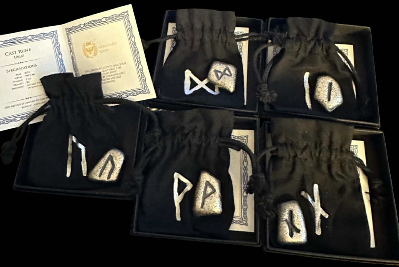 Rare collection of Germania solid fine silver Runes, Ltd Ed. of 2,500 each, boxed and numbered, total 5oz