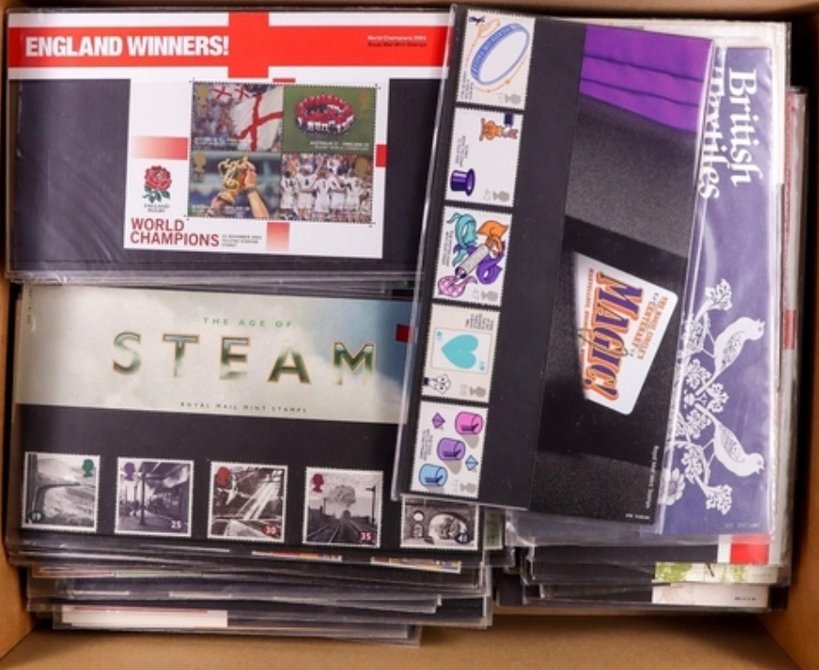 Face value £540 GB QEII fine mint NH stamps in Presentation packs, 1990’s to 2012 comprising Royal Mail useable stamps for discount postage with some 1st class stamp sets. Post and Go etc.