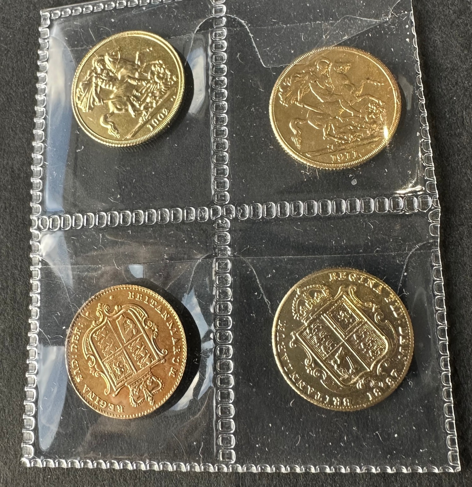 4 gold plated coins inc half sovereigns replicas QV (2) KG,KE