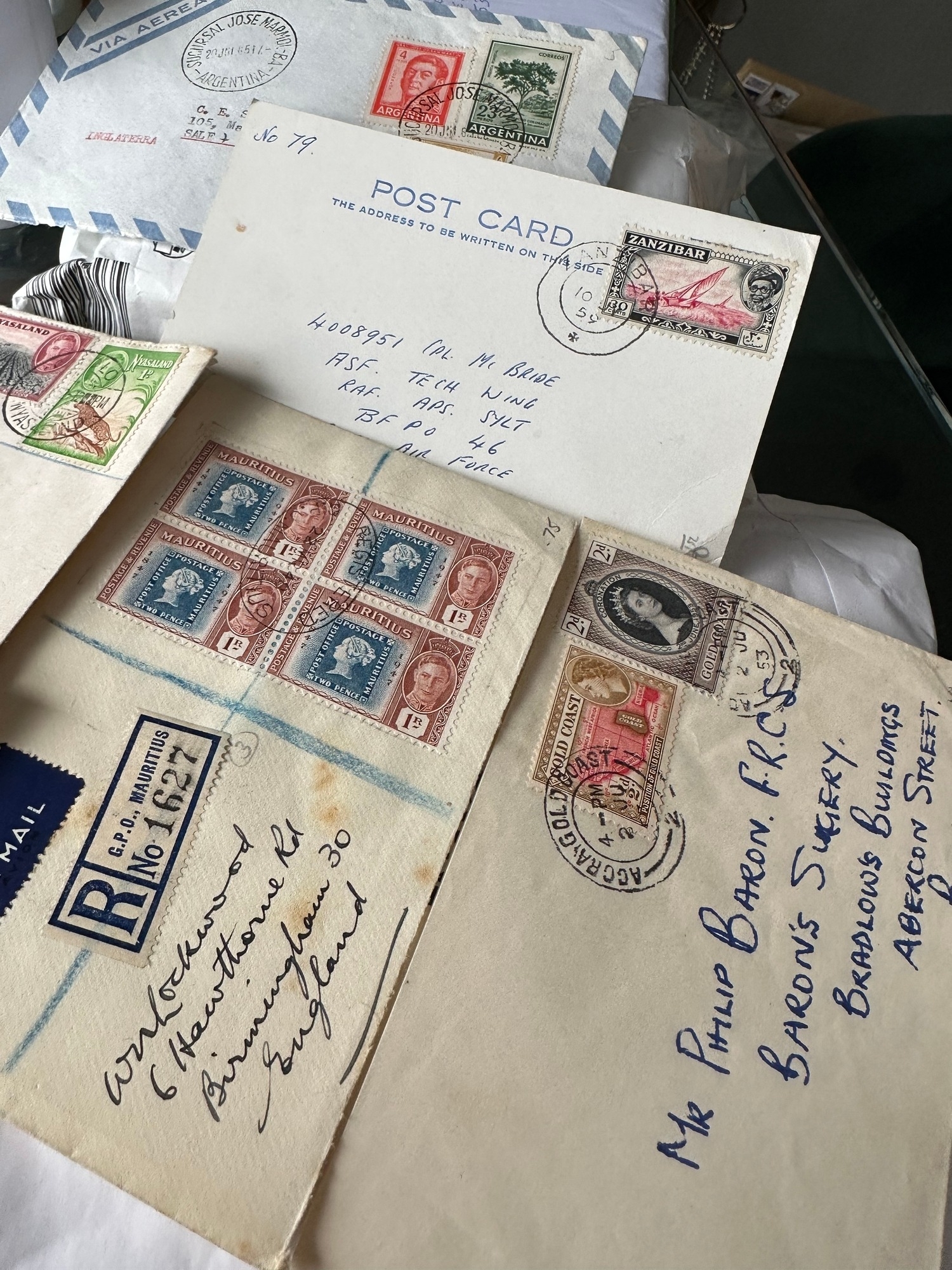 Stamps on commonwealth, Argentina and Zanzibar (postcard) registered and Airmail covers inc Mauritius 1948 1R block of 4 stamps