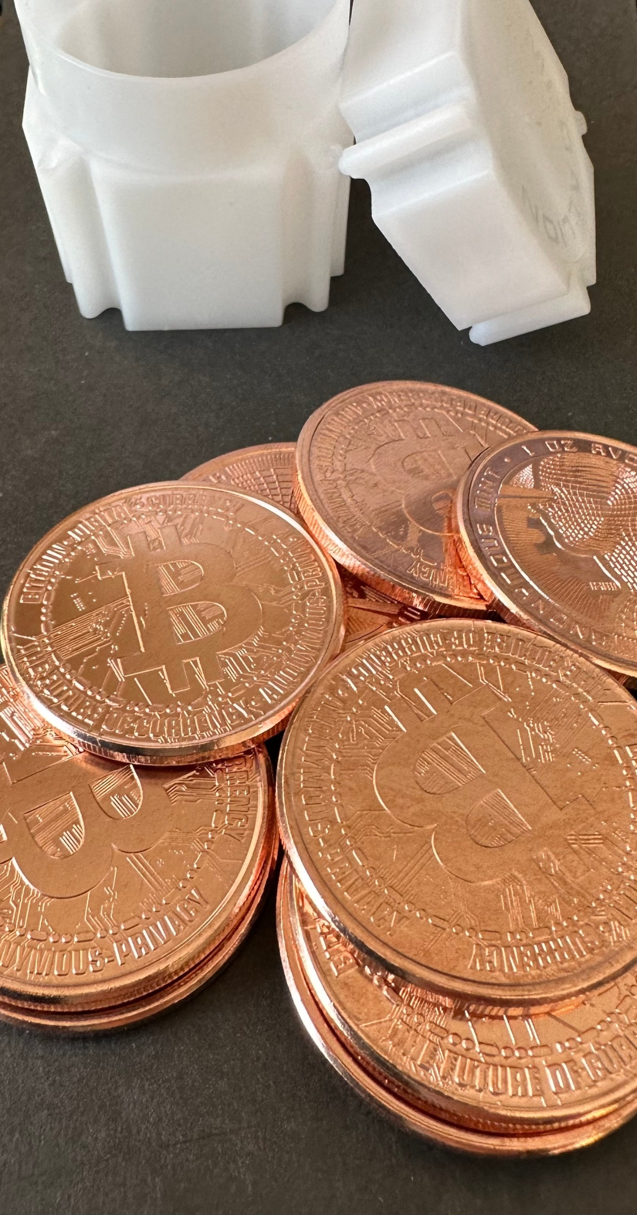 tube of 10 Bitcoin fine copper bullion tokens (like coins)