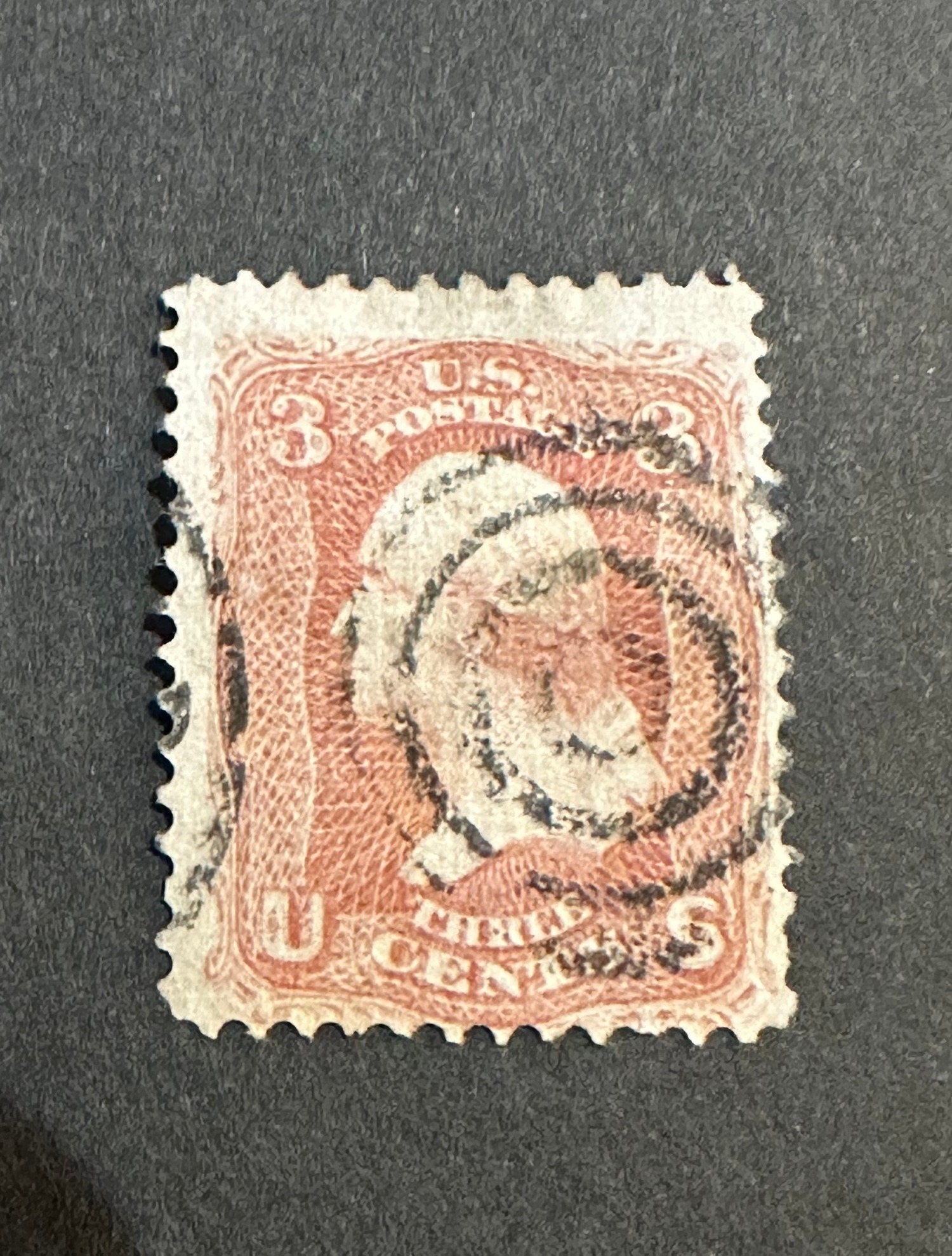 Rare USA grill stamp, 1867, 3c rose, fancy / bullseye cancel, George Washington, high cat value