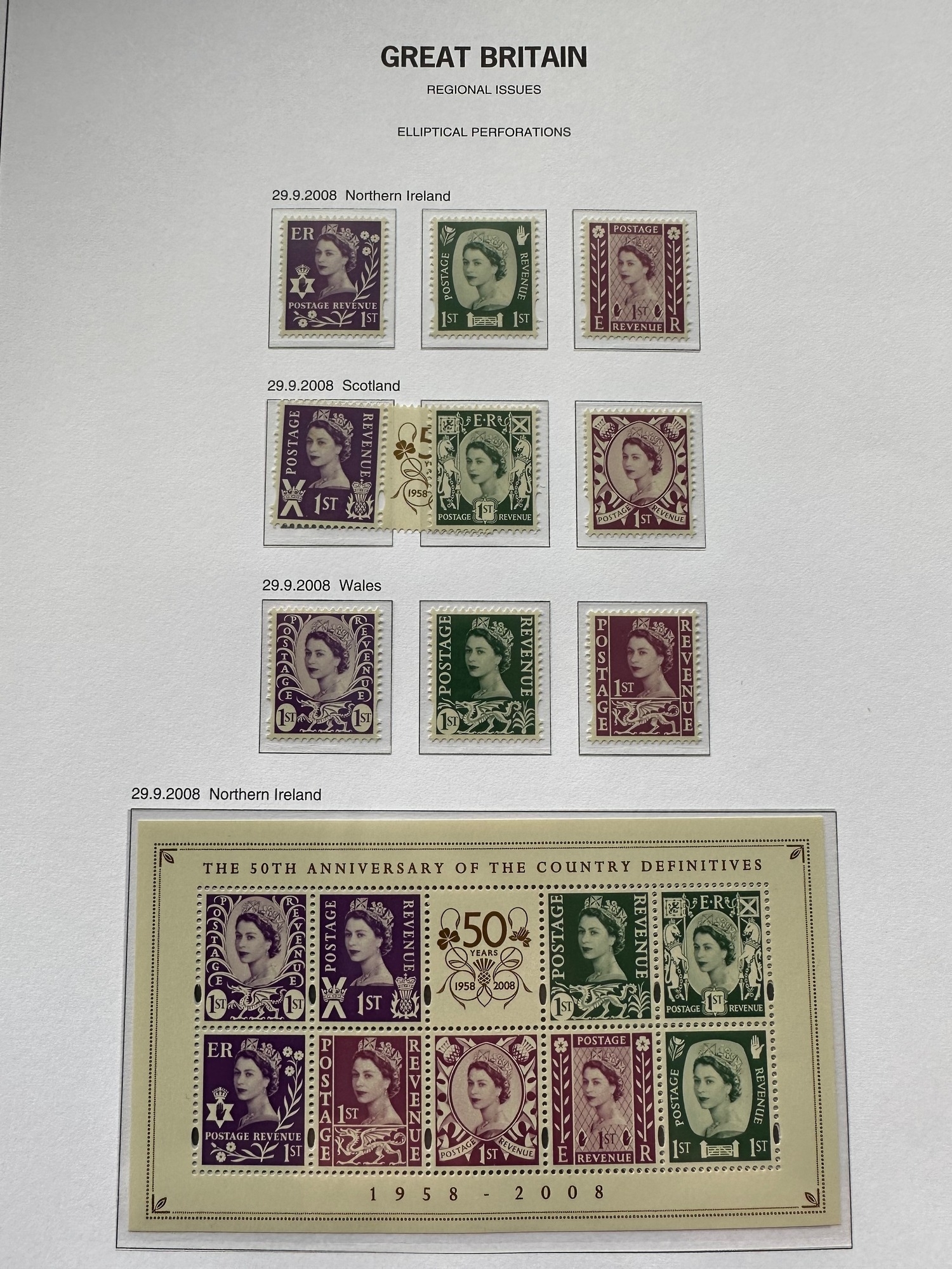 GB UK Regional ( England, Isle of Man, Northern Ireland, Scotland and Wales and Monmouthshire ) mint NH stamps and mini sheets on 27 full album pages complete from 1971 to 2012. Face value