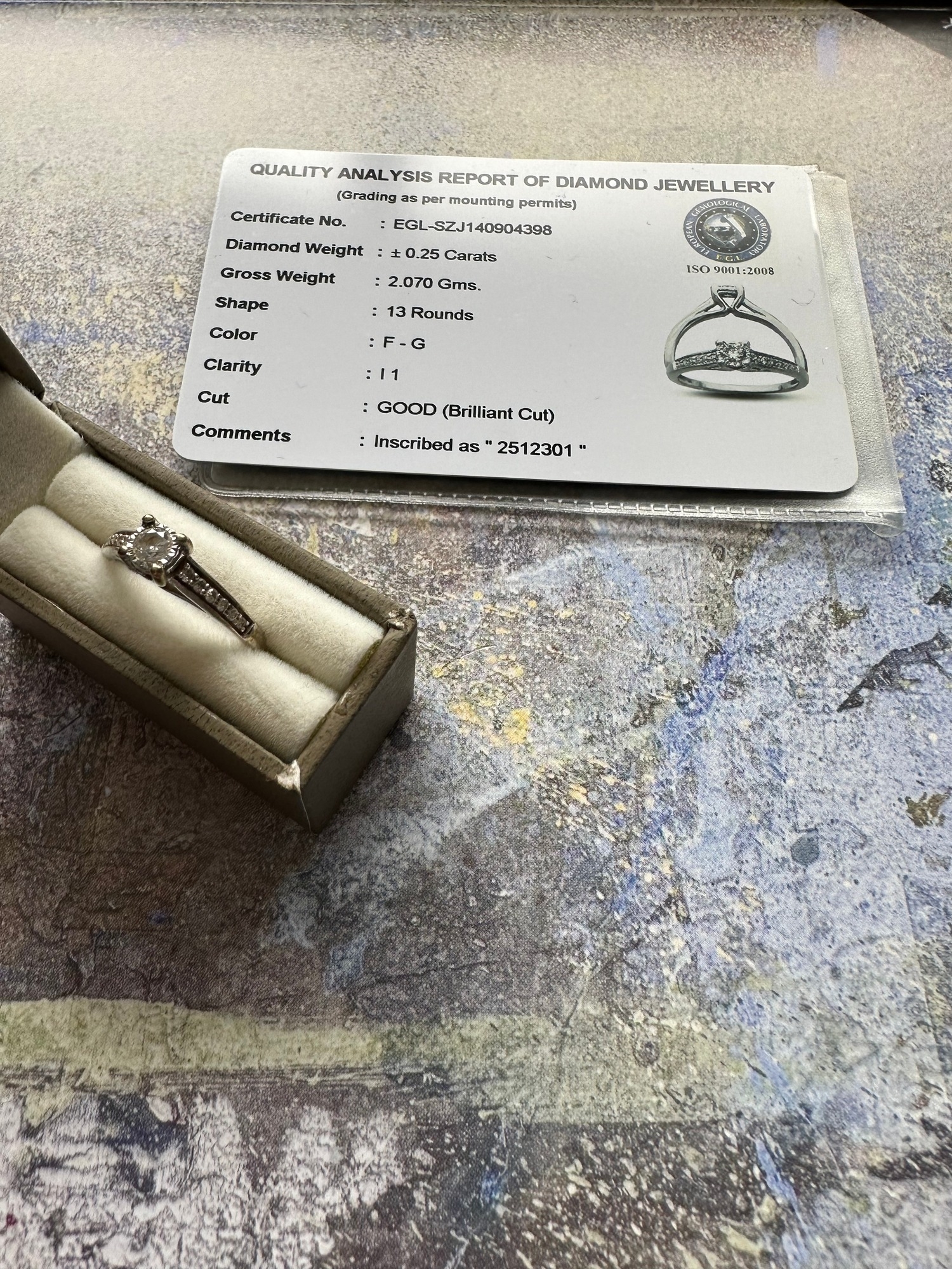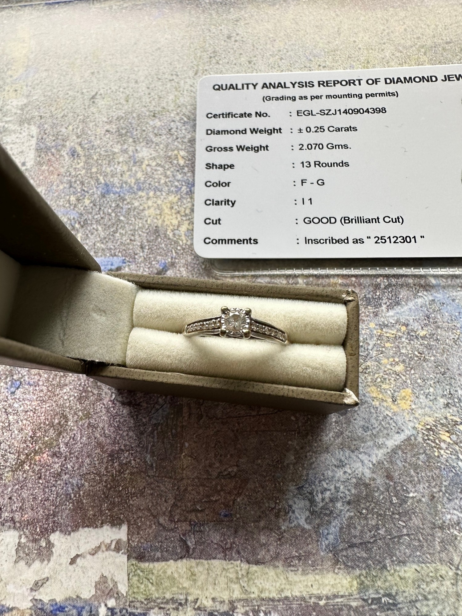 White gold engagement ring, certified, size L, 0.25 carat