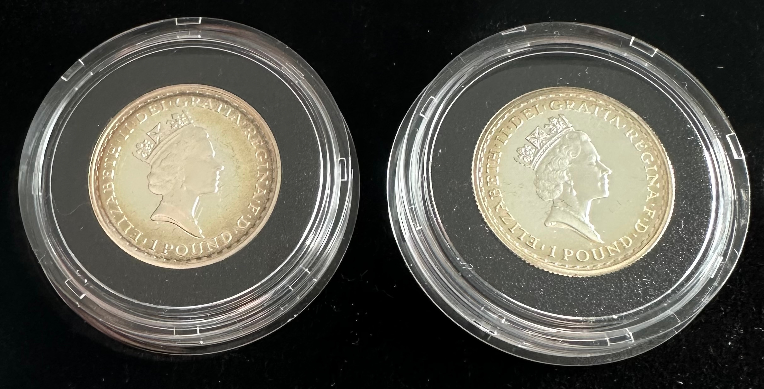 Two rare fine silver 1997 Britannia Coins GB £1 QEII