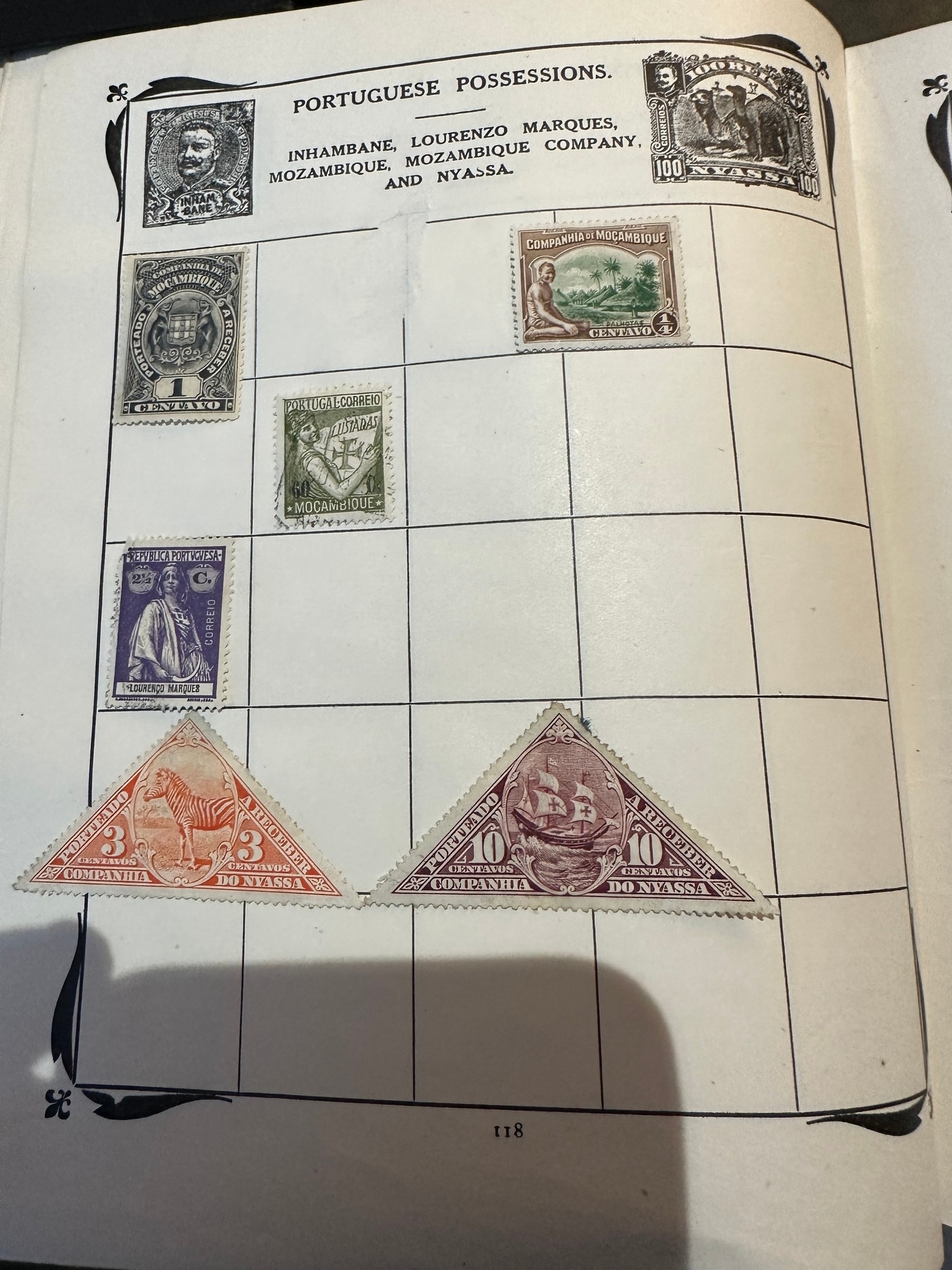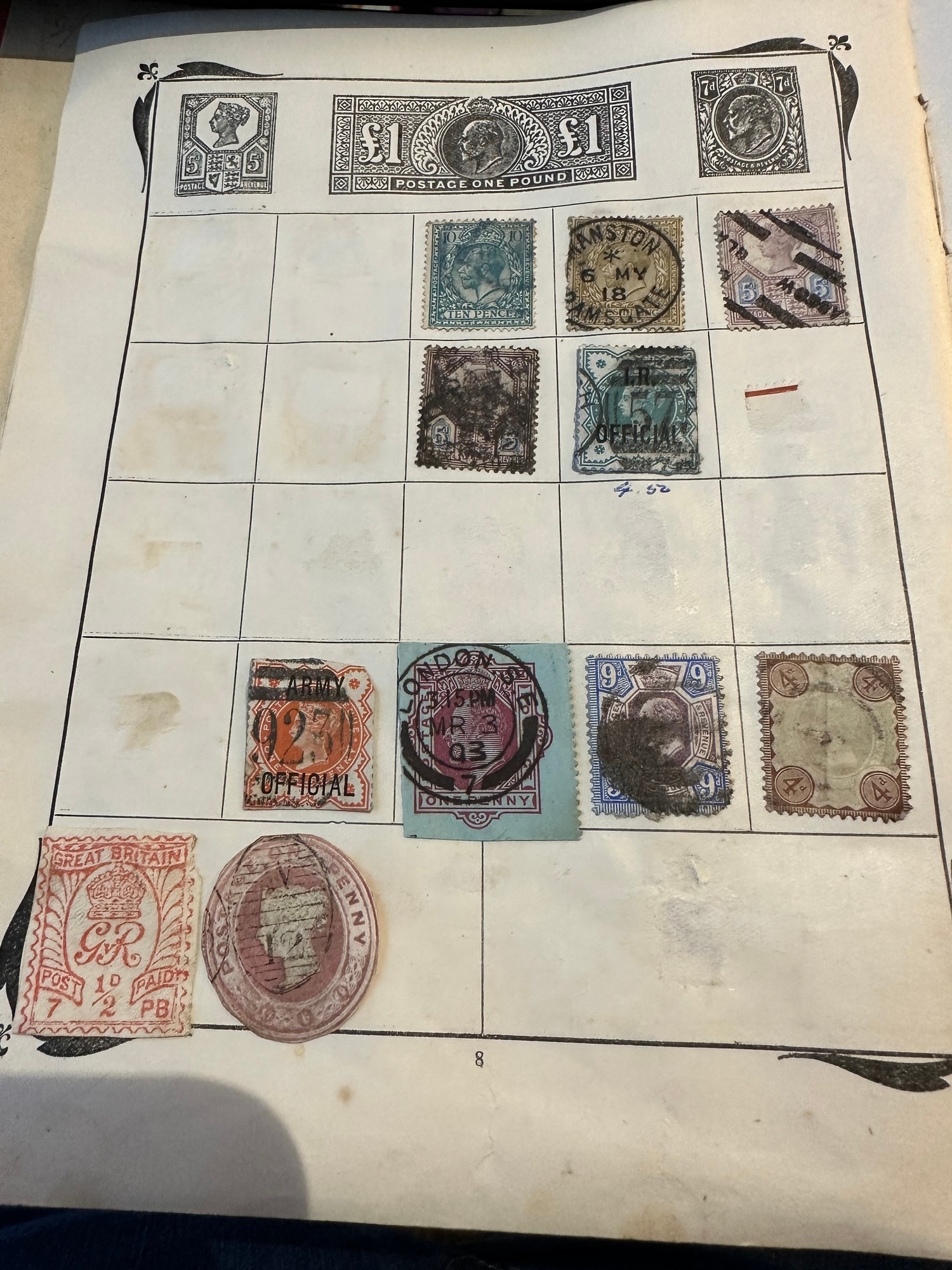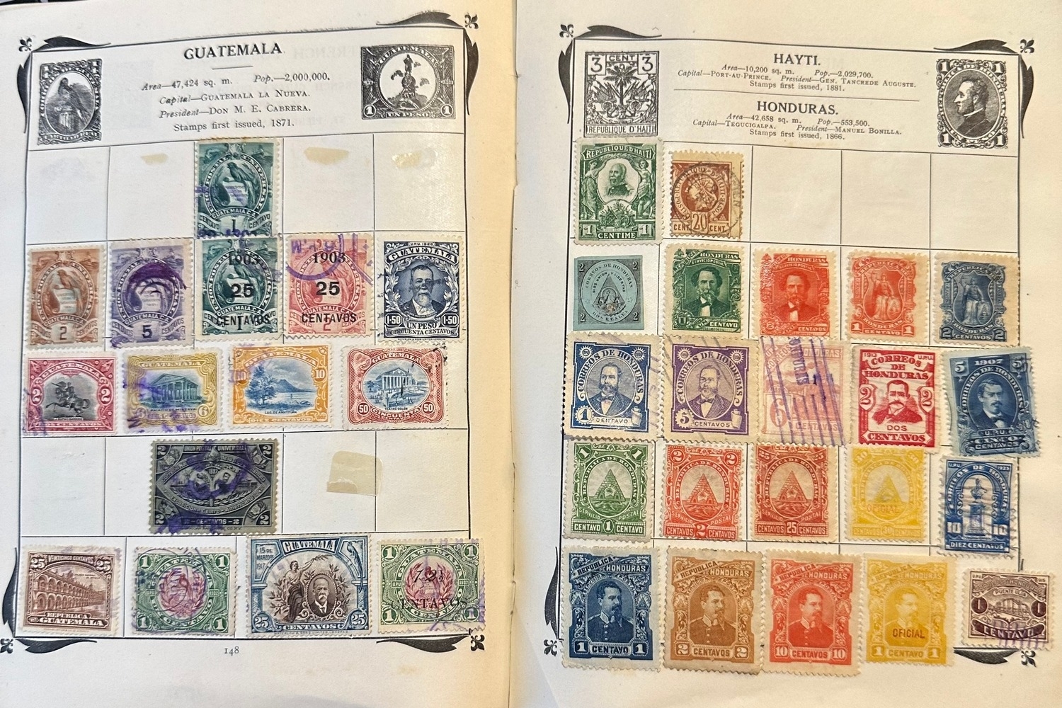 Antique Stanley Gibbons Improved stamp Album from 1916 including QV, KE, KG GB and Commonwealth stamps, Well represented are South America and European countries, some India / states, probably a few hundred stamps or maybe more mint and used collection