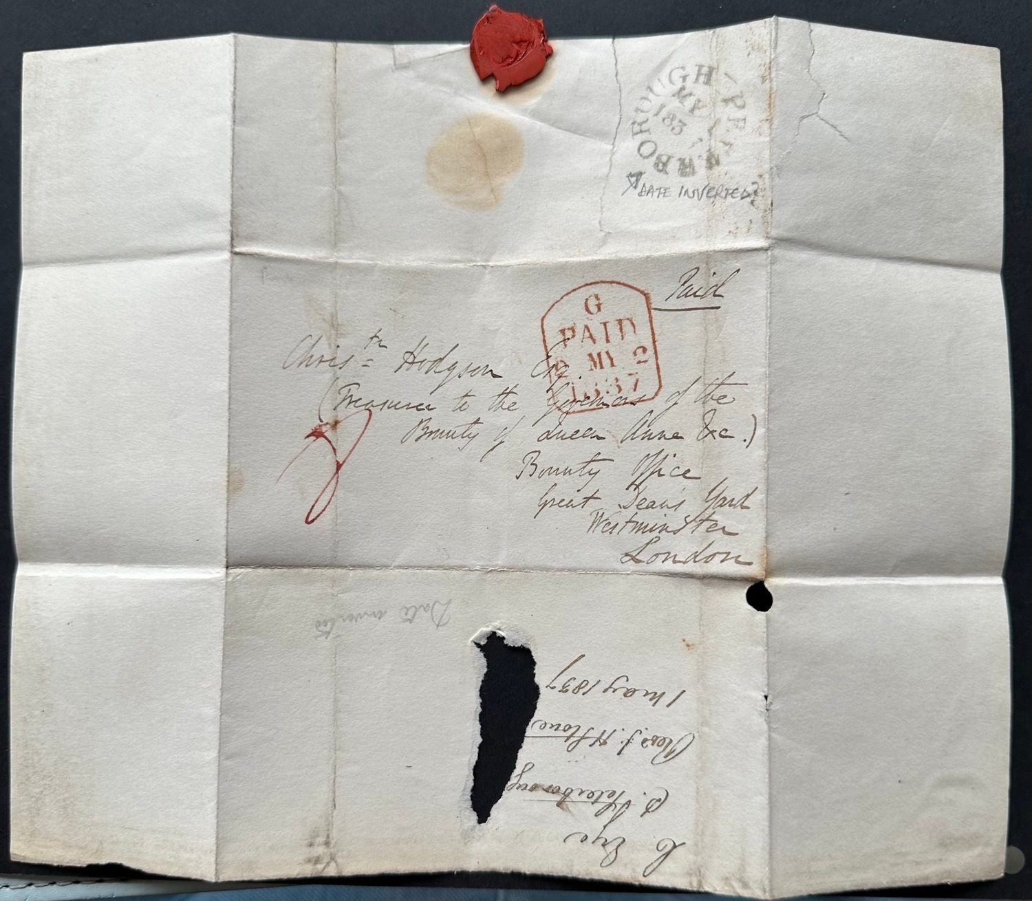 1838 GB pre stamps cover, Peterborough to London. Inverted date stamp ?