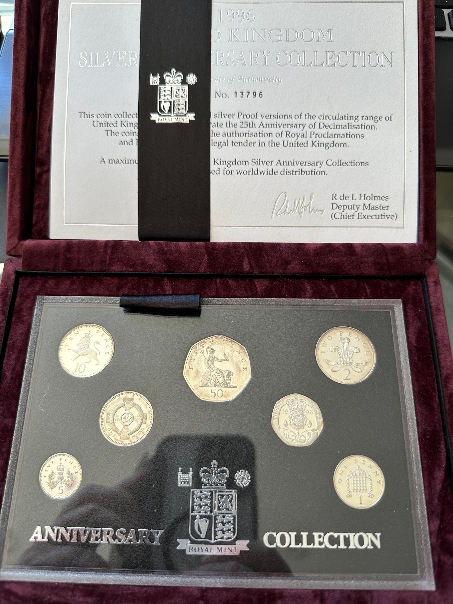 Royal Mint silver Anniversary 1996 proof set of 7 silver coins with COA limited edition