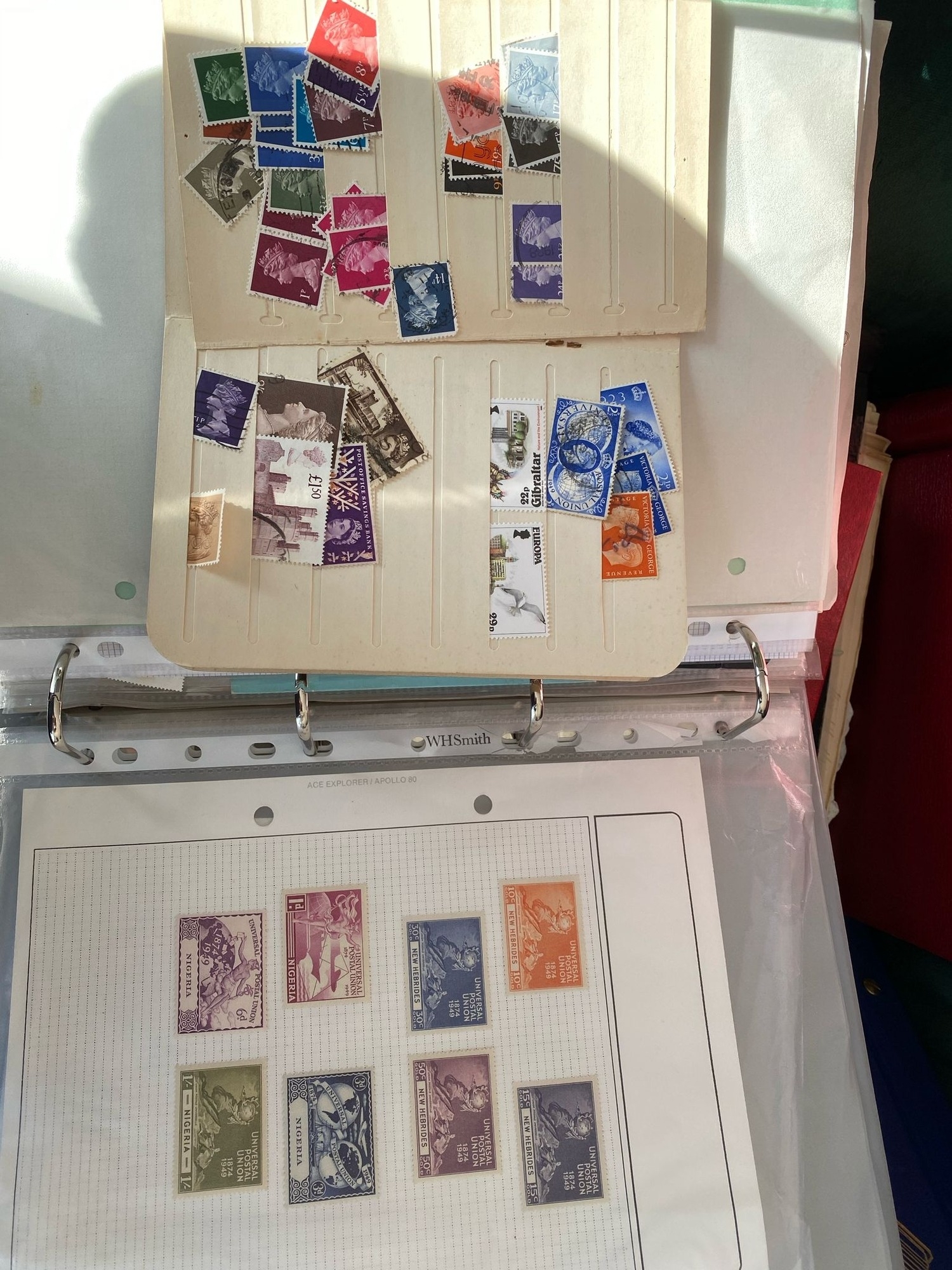 GB, Guernsey and commonwealth stamps in two albums (one a very thin old stamp stock book) of mint and used stamps with a few from QV to QEII
