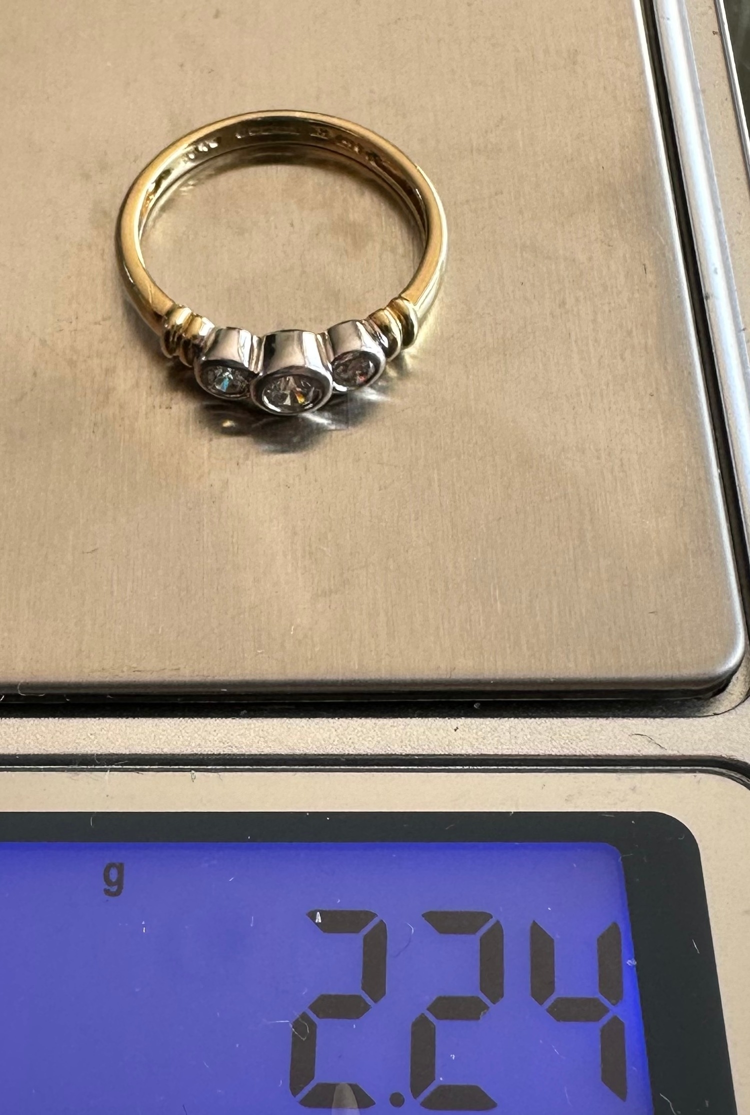 18ct Platinum diamond rub over trilogy ring, approx size L/M