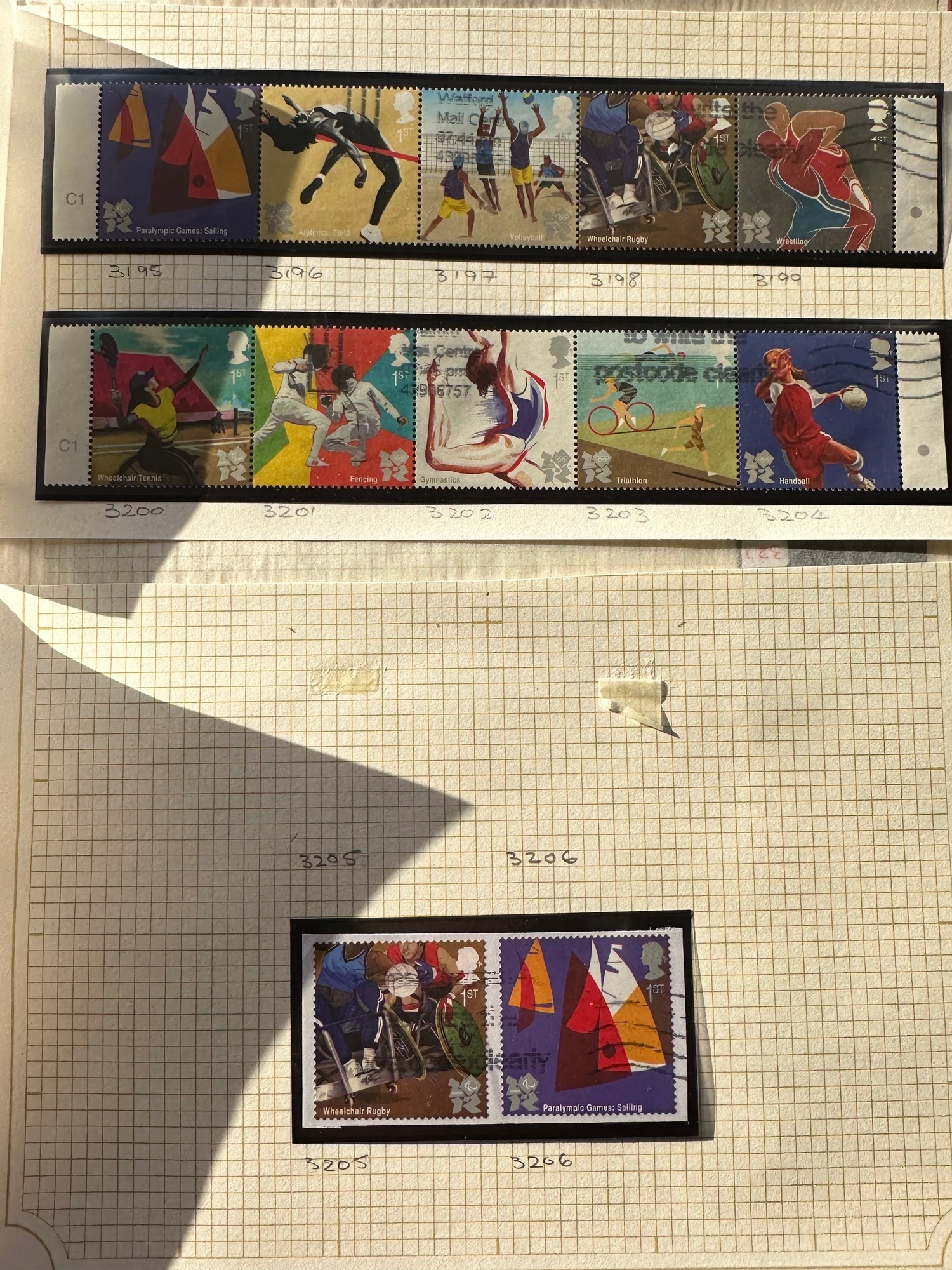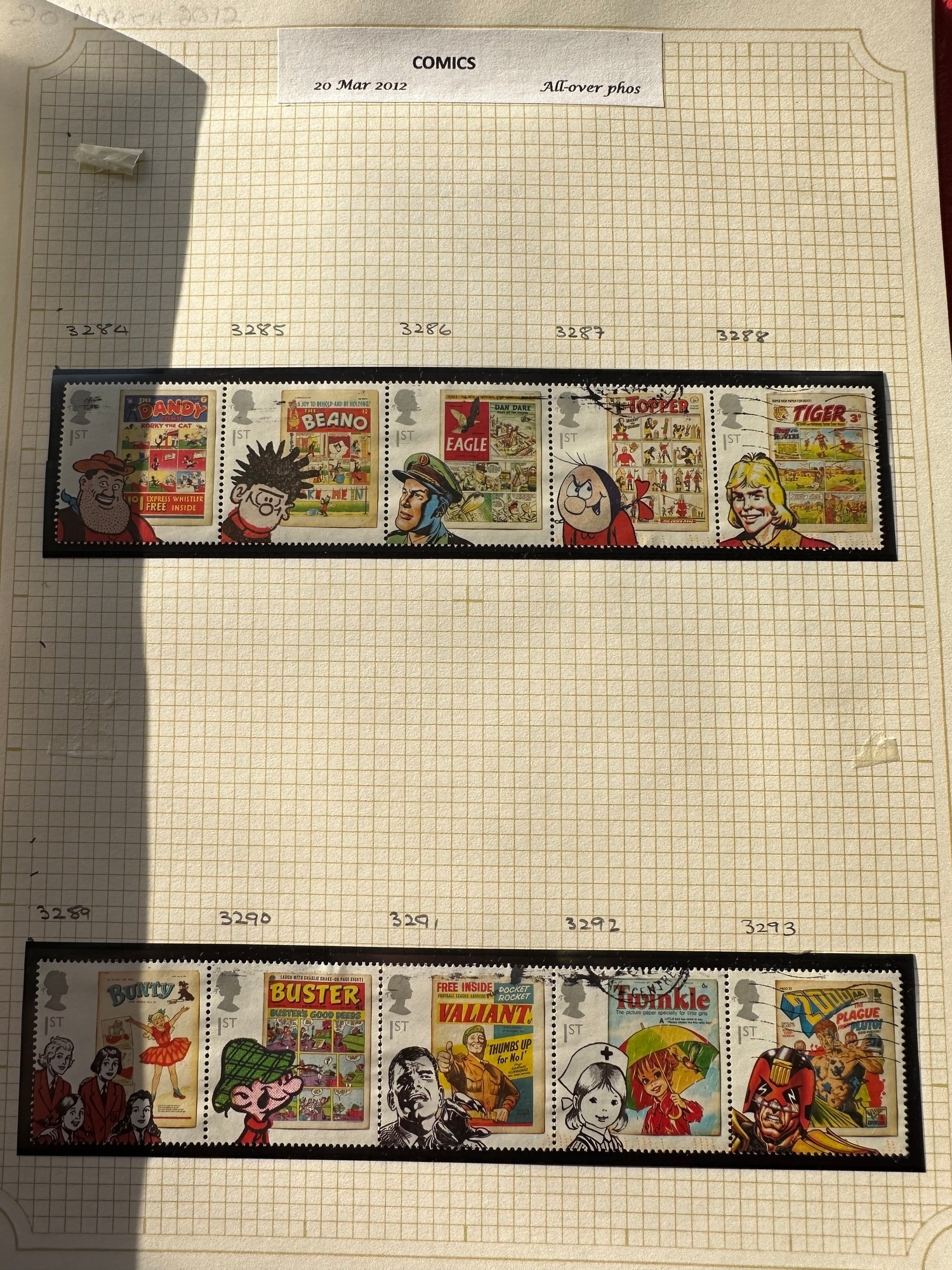 Small collection of used GB stamps and mini sheets ( some part ) including sets / part sets, Prestige Booklet Panes range from 2011-2013 with Dr Who, William Morris, Thomas the Tank Engine, Royal Family QEII Diamond Jubilee, Olympics, Beano comic strips etc.