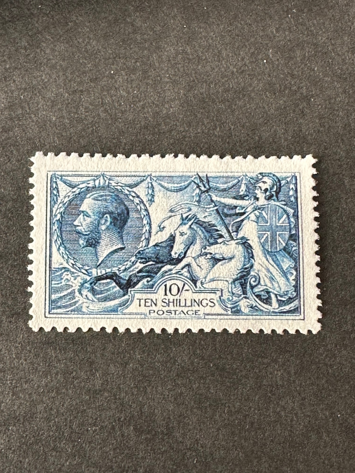 GB KG 10 Shillings mint Seahorses stamp, blue MNH, FACSIMILE / REPLICA / FORGERY ( original would have high cat value ) a/f
