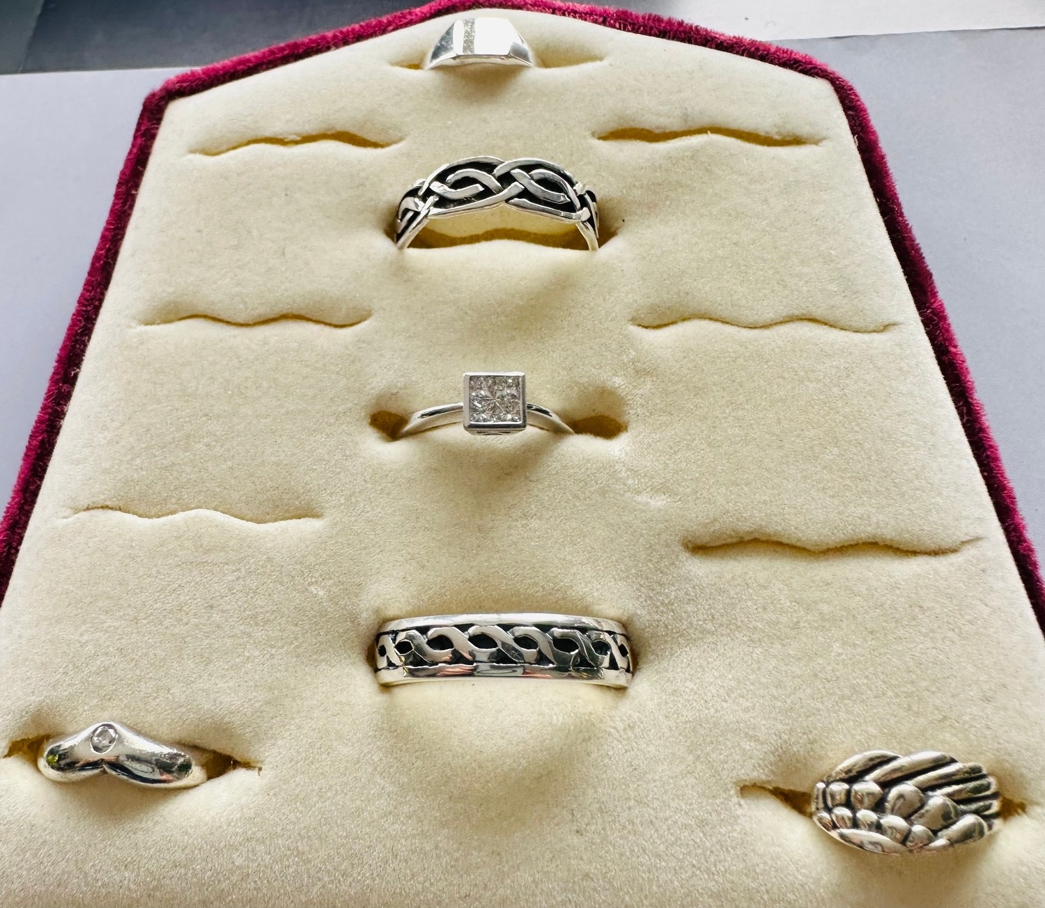 Silver signet ring (M) silver bands rings and silver engagement rings etc. sizes up to S ( total 6 rings )