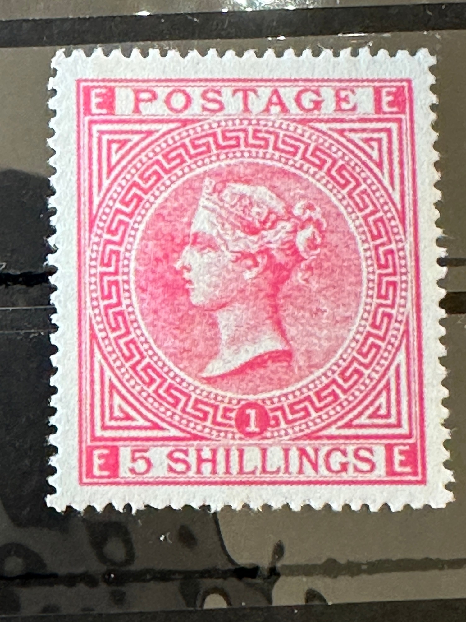 GB QV SG125 5/- rose Plate 1, fine mint Facsimile / Replica / Forgery of this scarce stamp ( original would have a high cat value £9,500 ) a/f