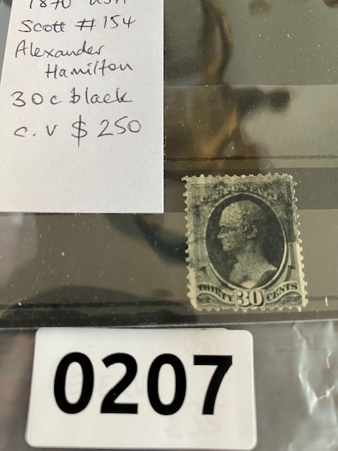 US 1870 Alexander Hamilton 30c black American stamp, Scott #154, high cat value $ 250