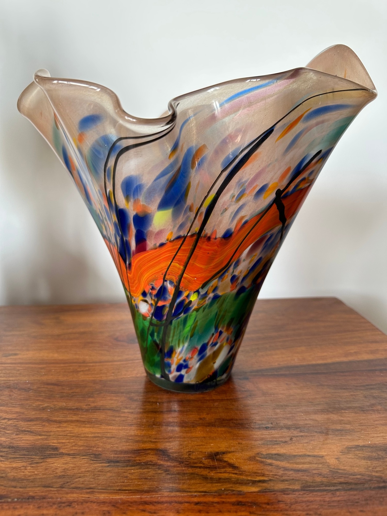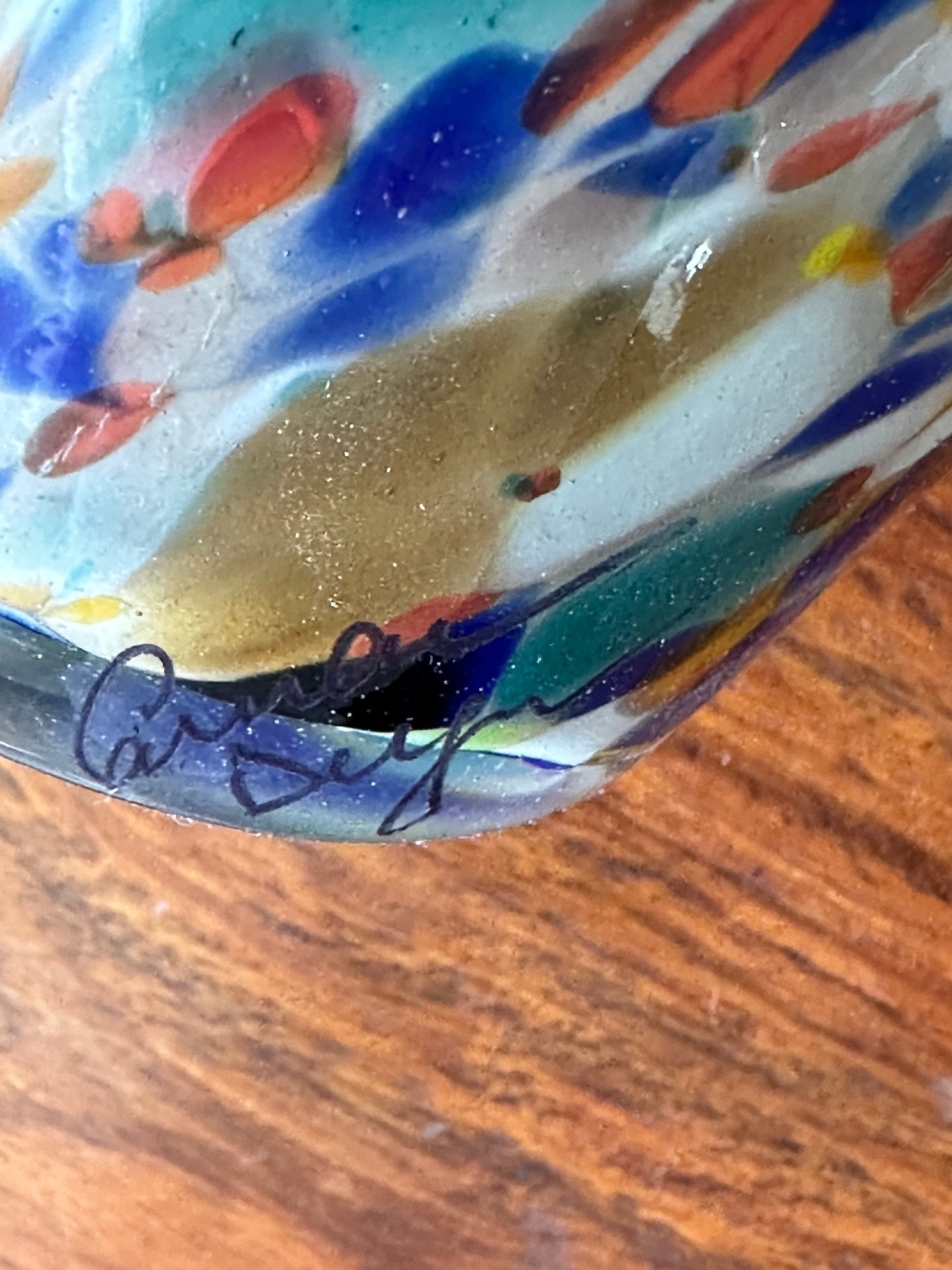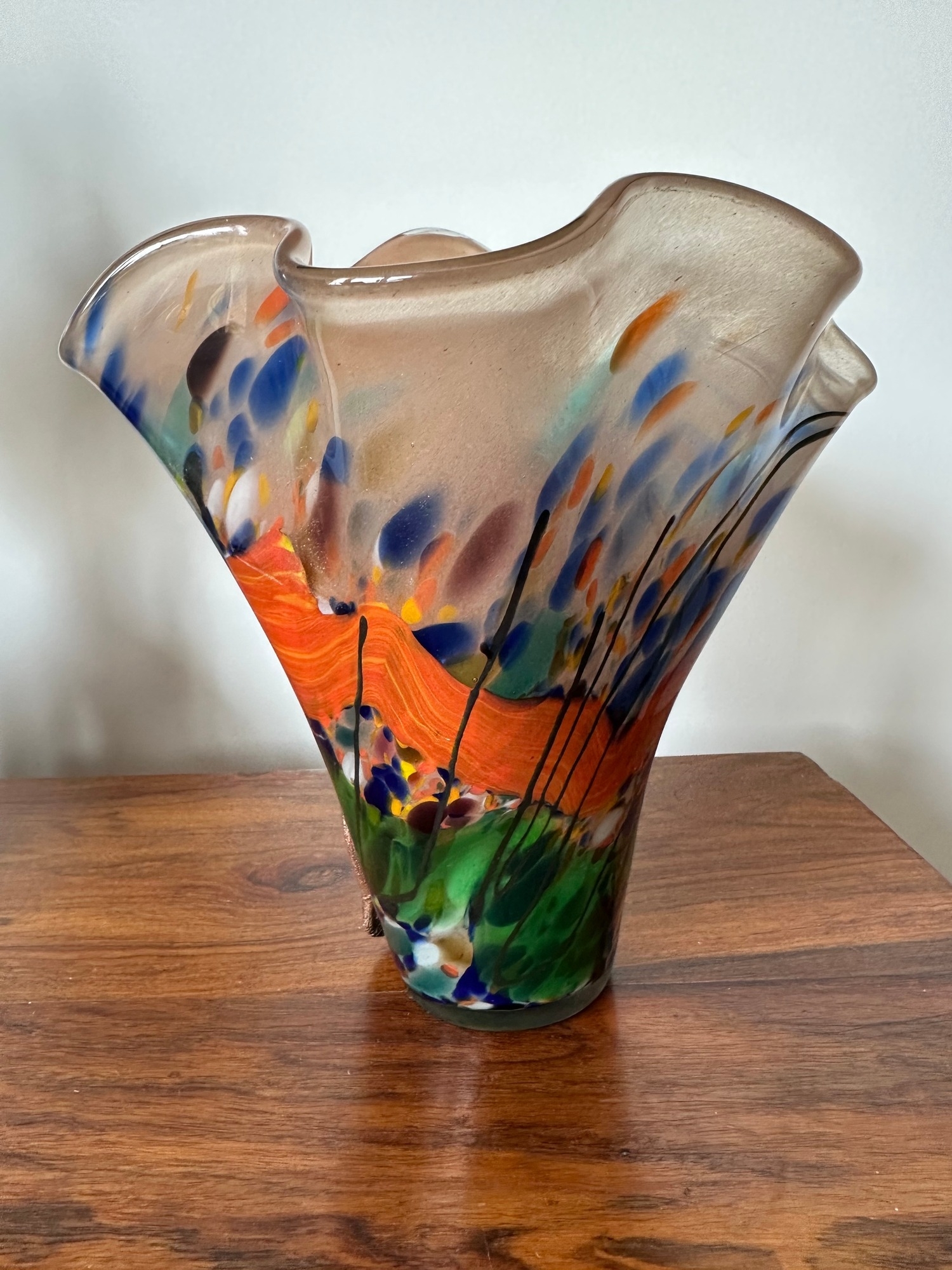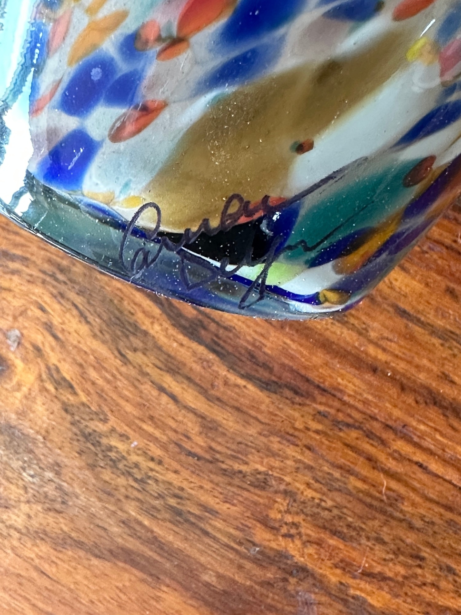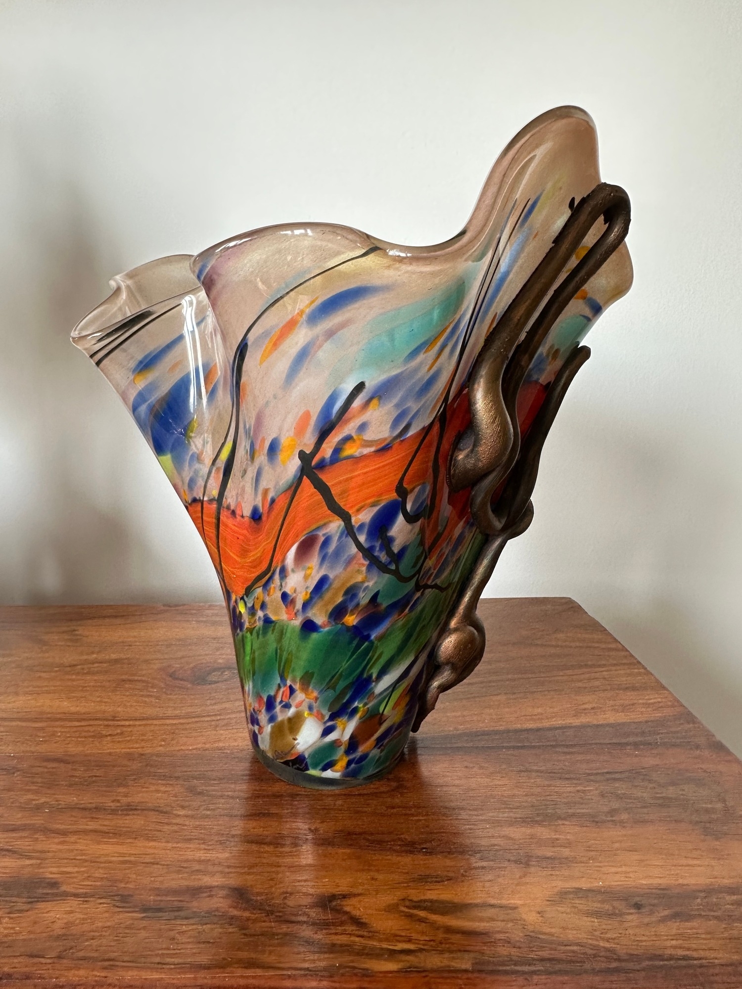 Coman Design designer Art Glass metal fusion vase, unique piece signed by the Romanian artist Mark Coman, 20cm tall. Please note that it is a sturdy hand blown piece and if required we can pack as best we reasonably can but any possible damage occurred in transit is the buyers own responsibilty
