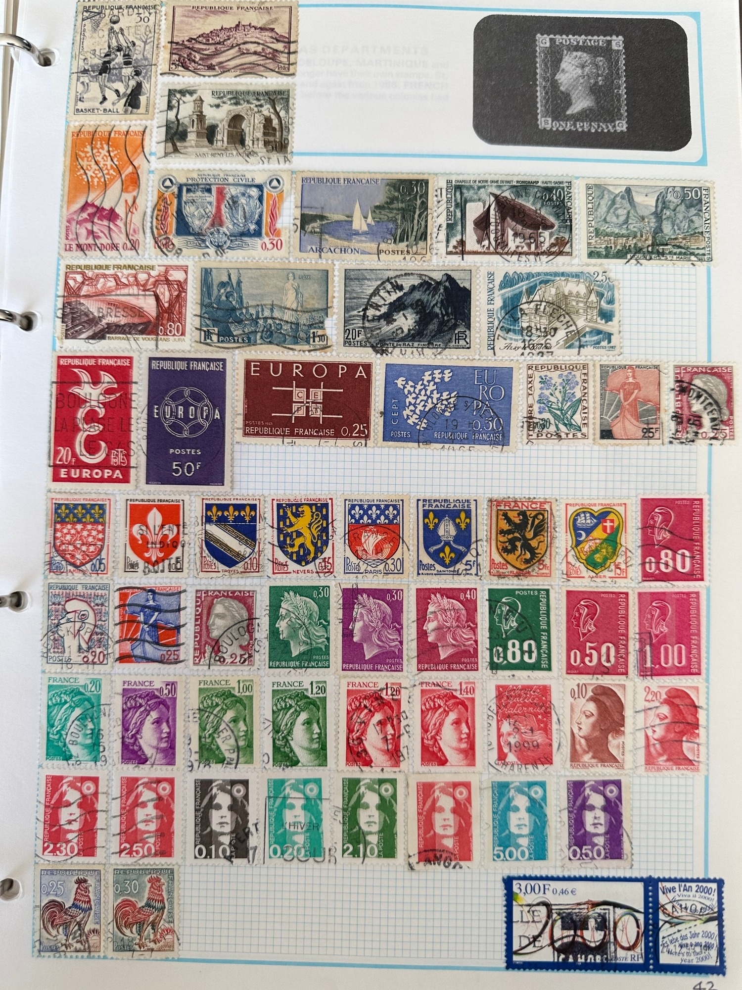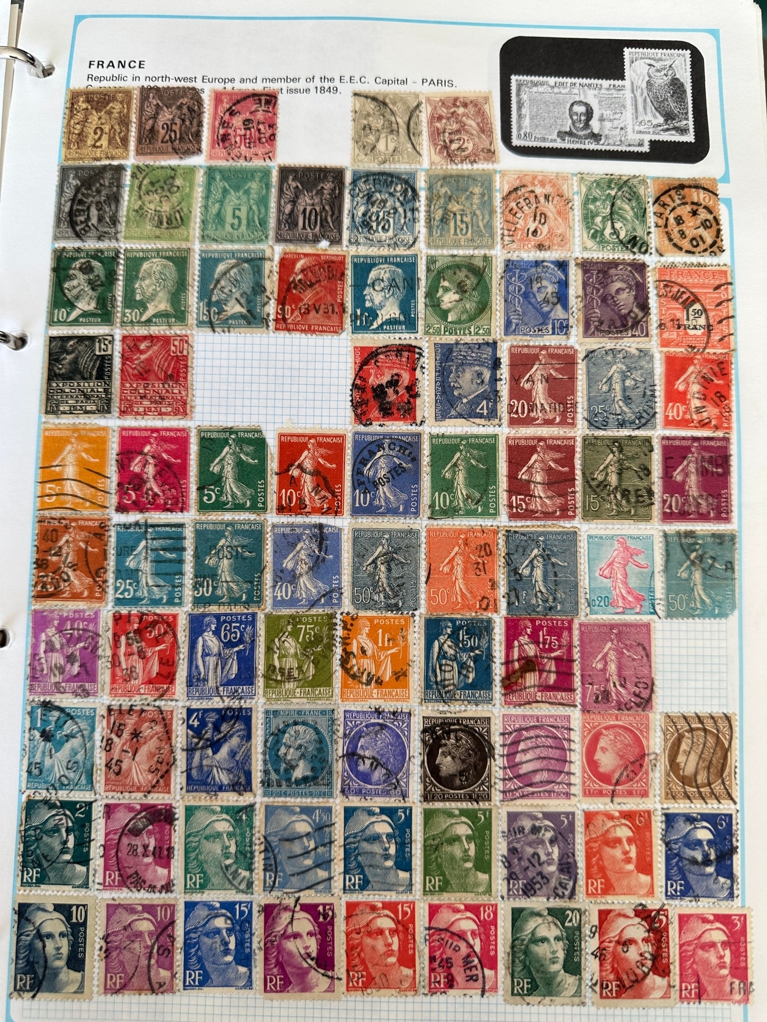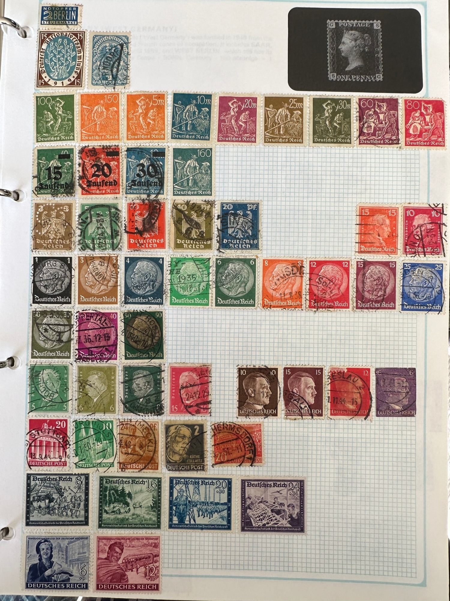 SG WORLDEX stamp album ( incomplete pages – excludes most commonwealth ) with hundreds of stamps from QV, strength in France and Colonies, Germany and States, GB with Regionals, Machins, Channel Islands, Hungary, european countries and USA, lots of other countries less well respresented and many hundreds if not over 1,000 stamps