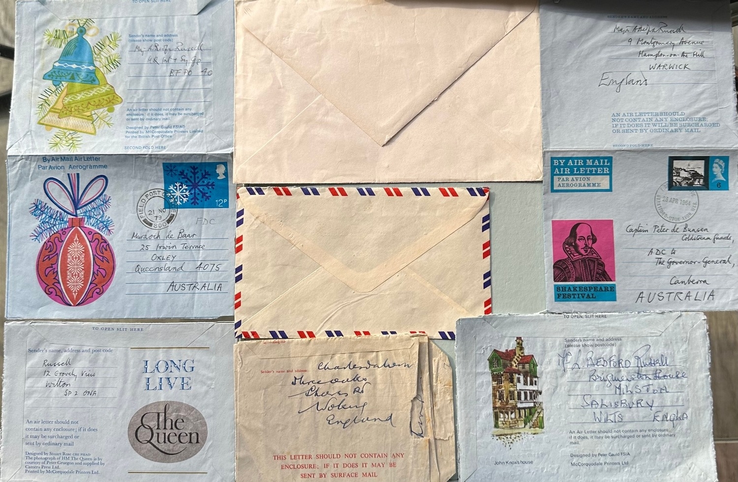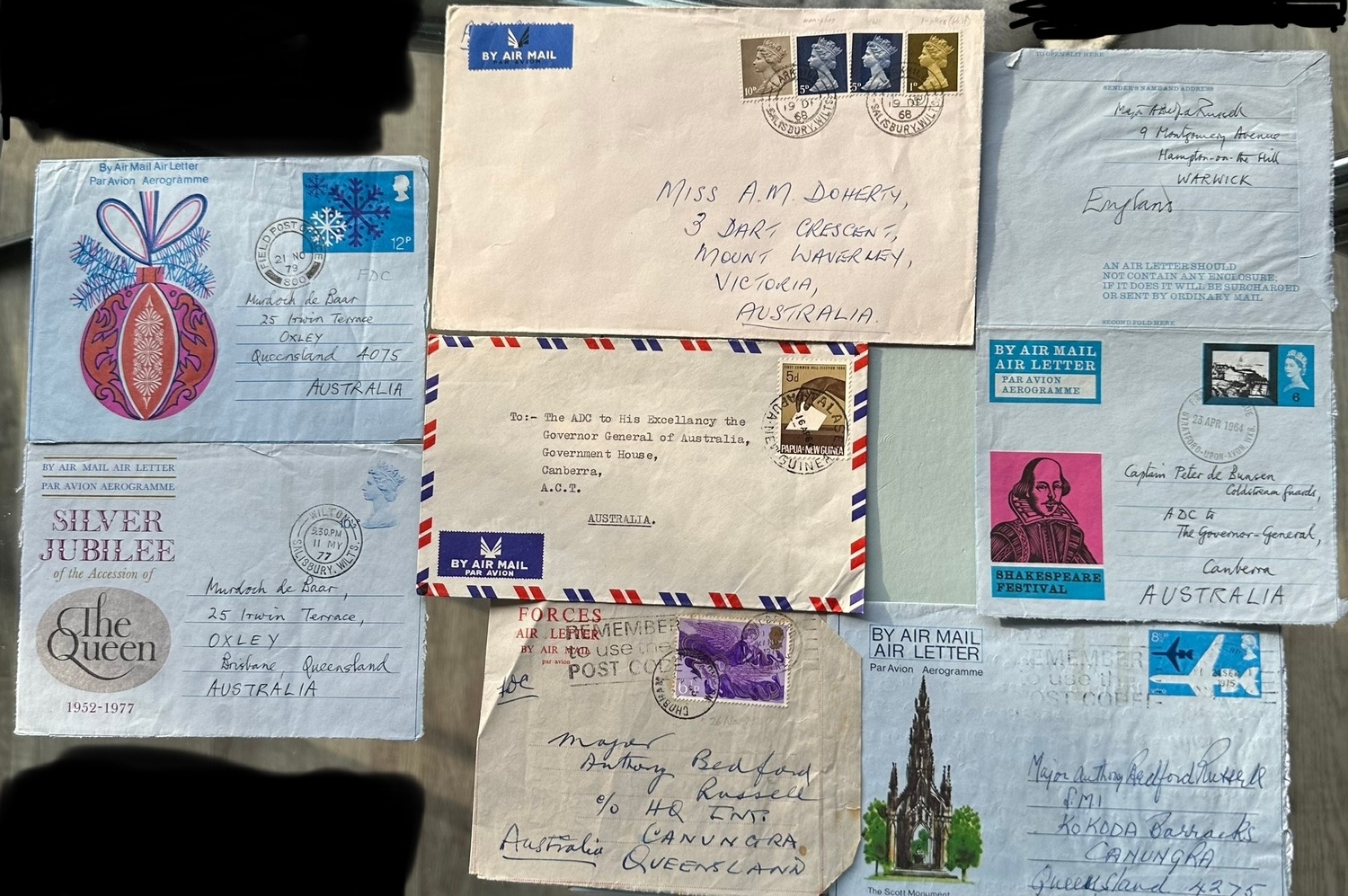 AUSTRALIA FDC and other Air Letter military interest Air Mail from Salisbury and Germany etc to various Australian addresses inc. Captain Peter de Bunsen, Coldstream Guards. Papua New Guinea stamps. Interesting little lot
