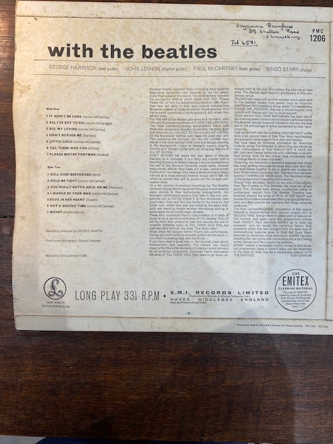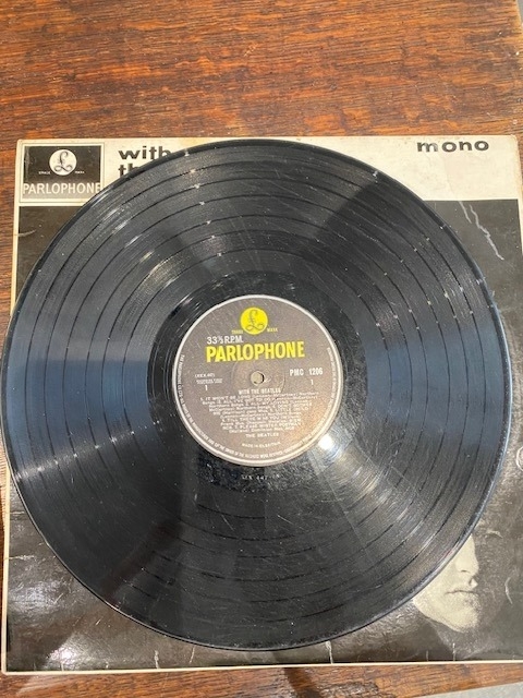 With the Beatles, mono, Parlophone, PMC 1206 PCS 3045 ( XEX 447 -6N, 448 – 7N ) Printed & made by Garrod & Lofthouse Recording first published 1963