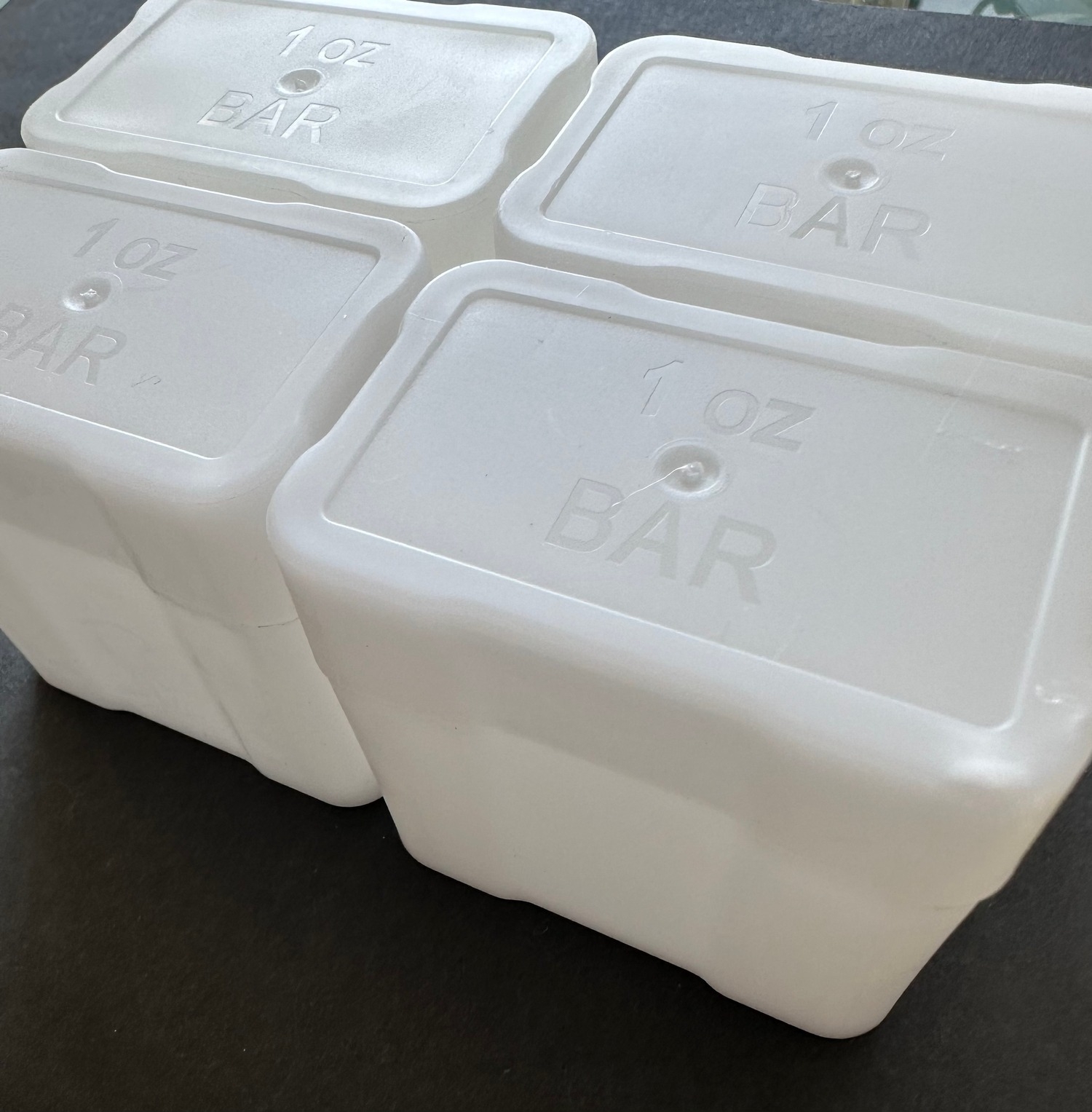 Four empty plastic ‘tubes’ to hold 20 silver or gold bullion bars each