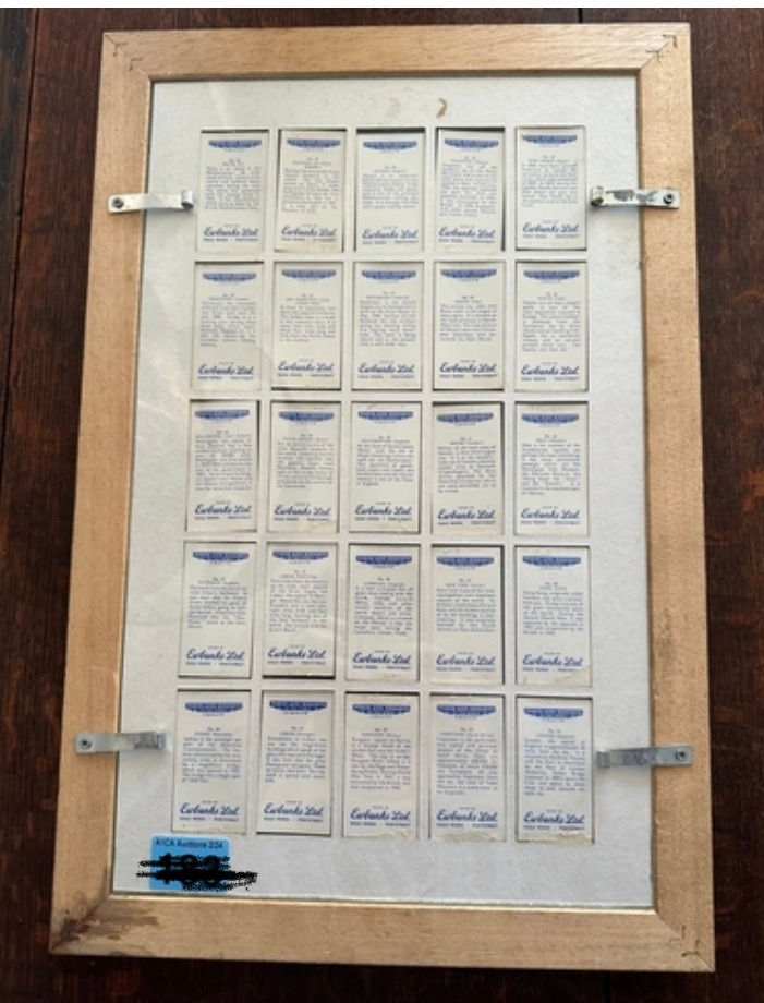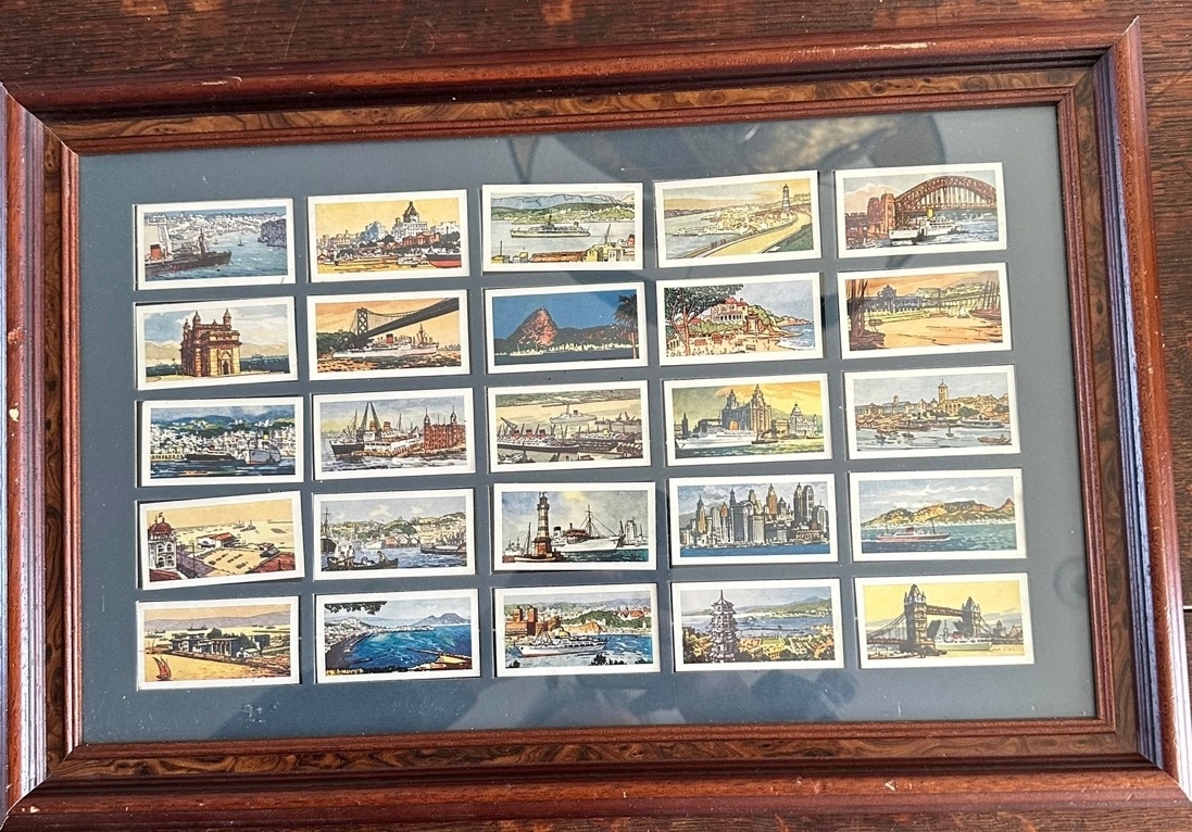Cigarette Cards in interchangeable frame, 48cm x 32cm external frame measurements. Cards included Ewbanks ‘Ports and Resorts’