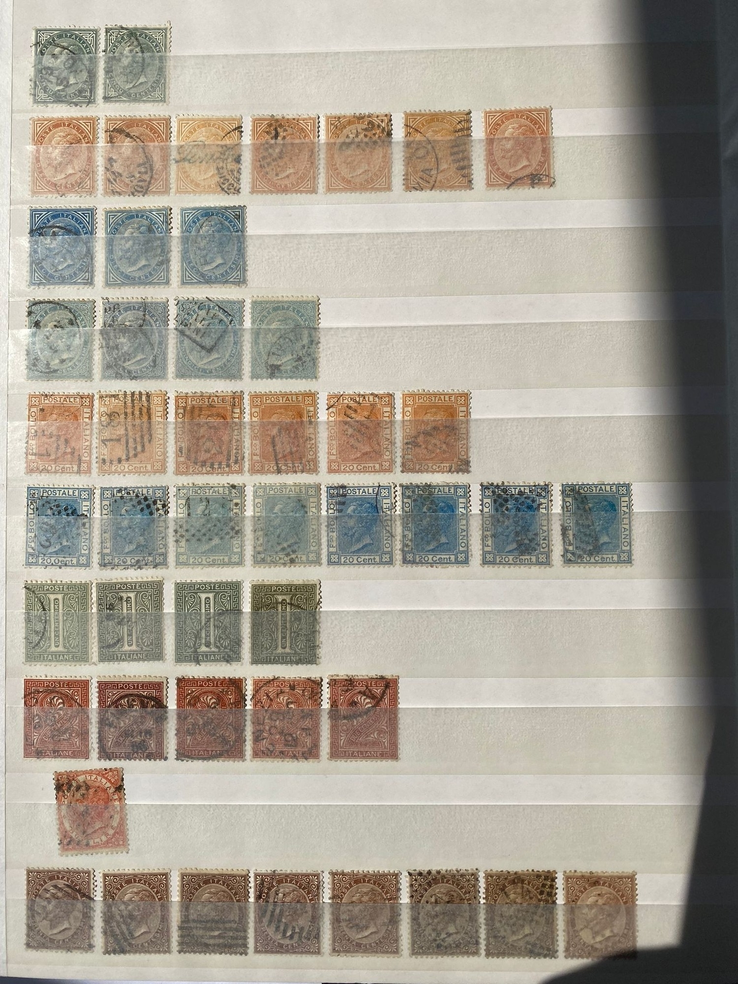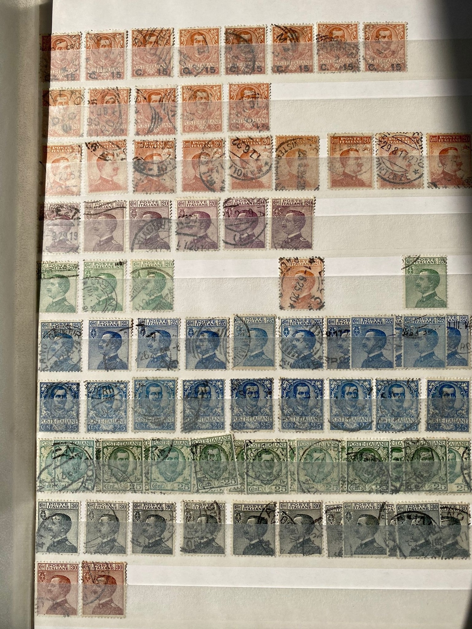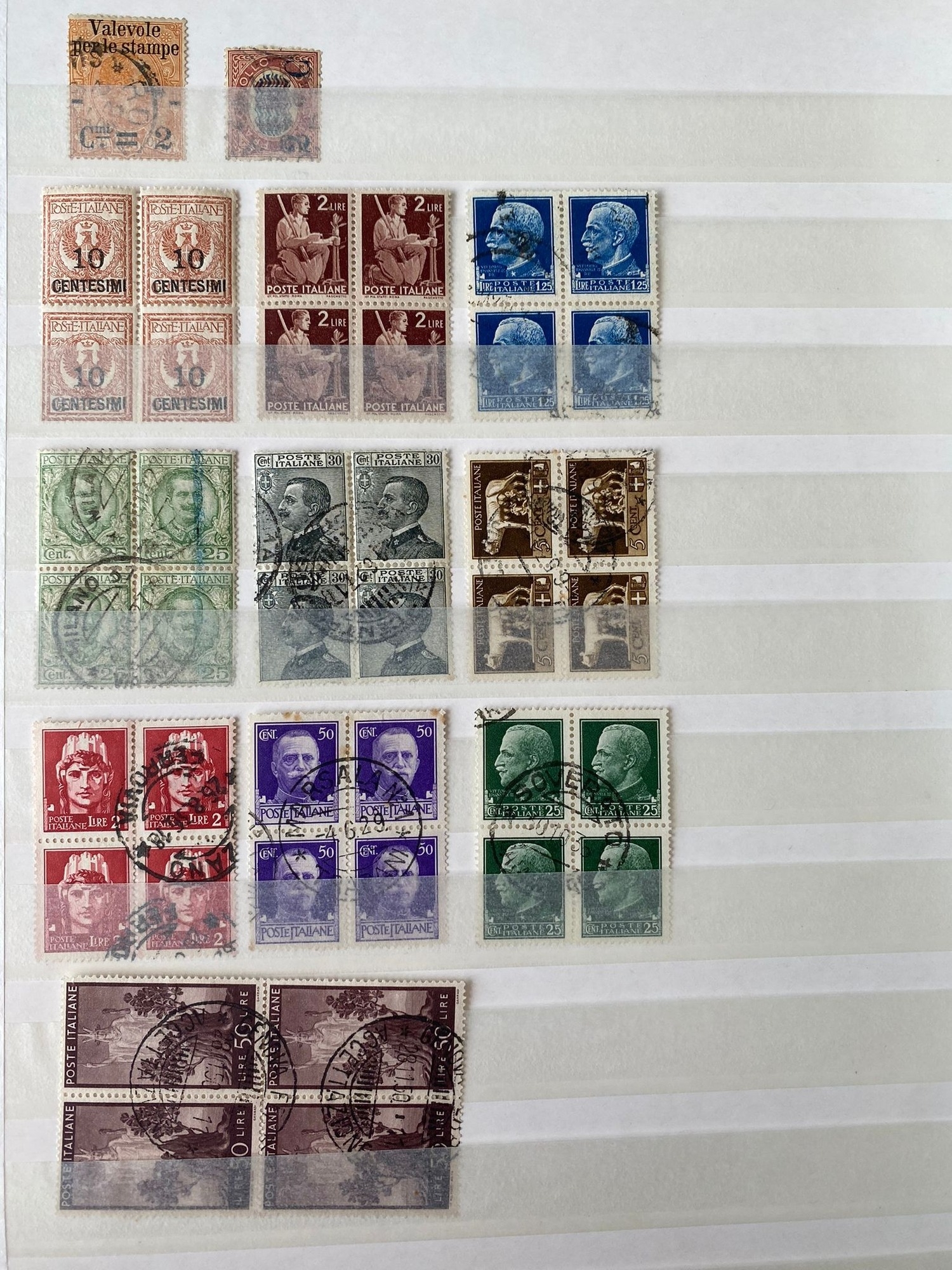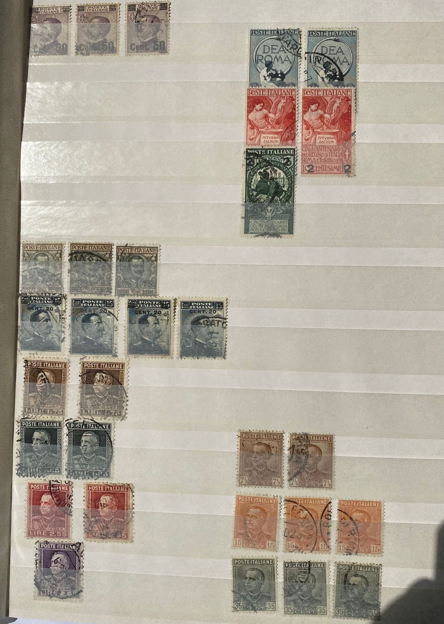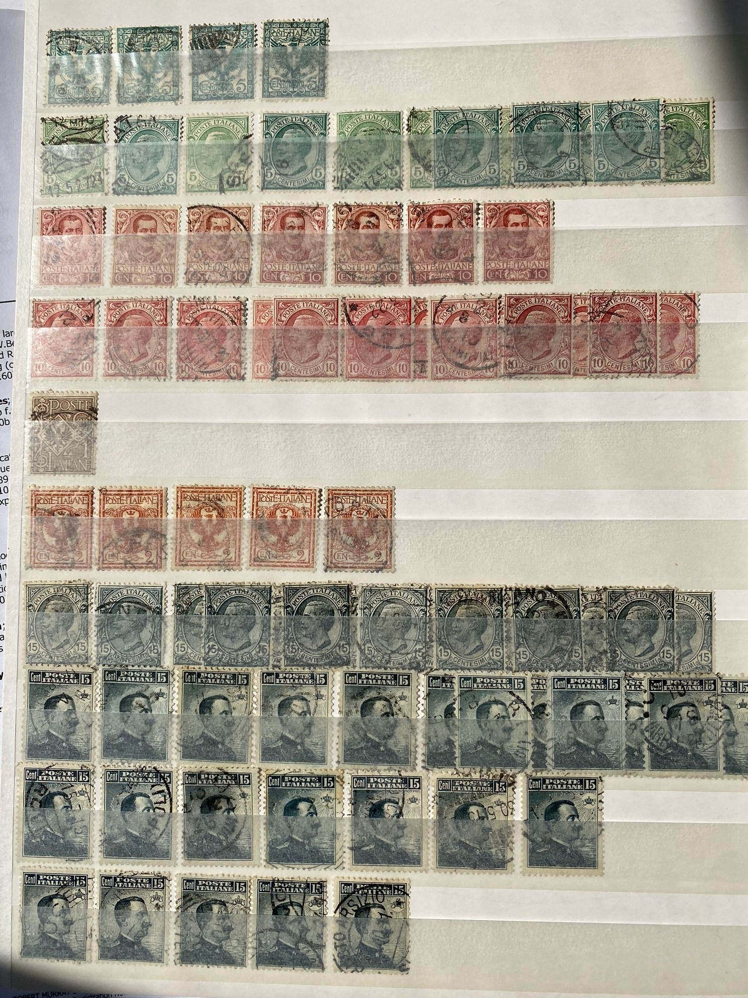 ITALY duplicated lot of early stamps on stockleaves of 1863-65 issue (c.48, inc 2 lire), 1889 values inc. 1lire stamp (4), 1891-97 5lire, 1901-08 defins (c.353, inc.7 of 1910 10 lire0, 1927-29 2l55 (2) and 2l65, 1903-26 Express issues (49), and many others