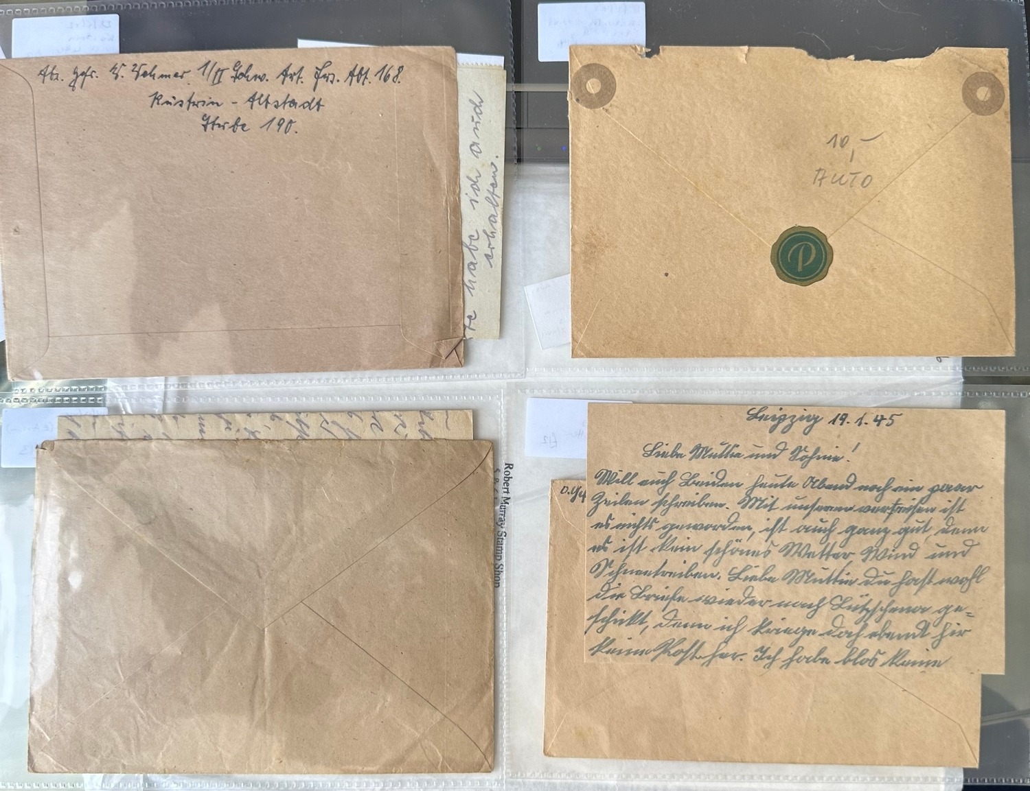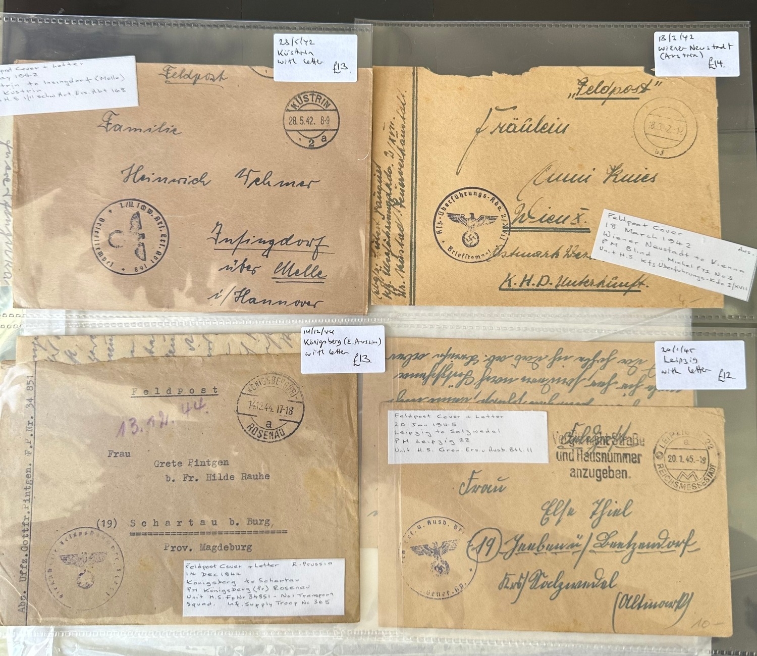 GERMAN Feldpost covers (4) from 1942-1945 some with letters, Austria, Vienna, E Prussia, Leipzig, WW2, military, second world war, postal history interest, 1942 with blind c.d.s.