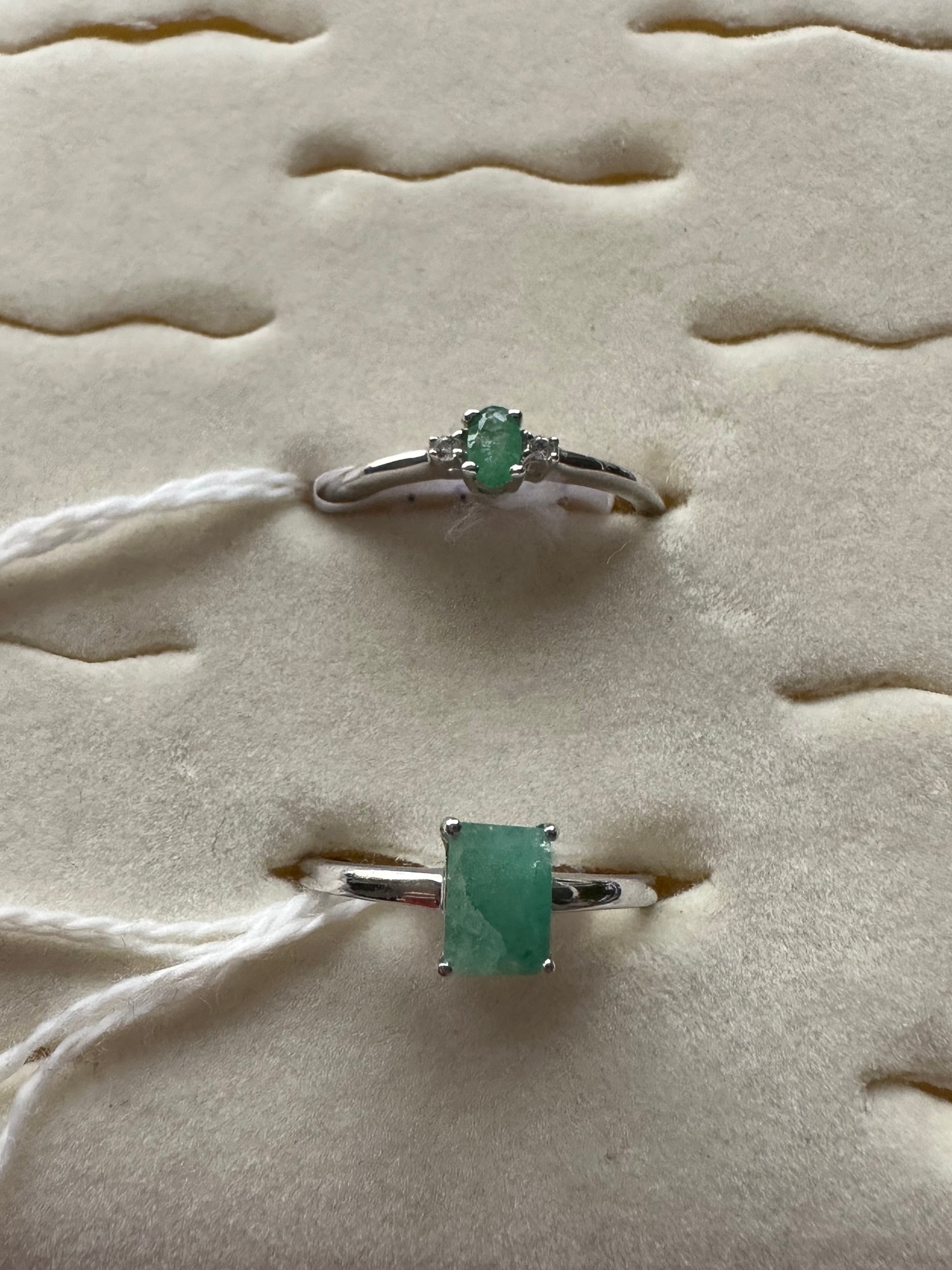 two 925 silver emerald rings, sizes L 1/2 and Q