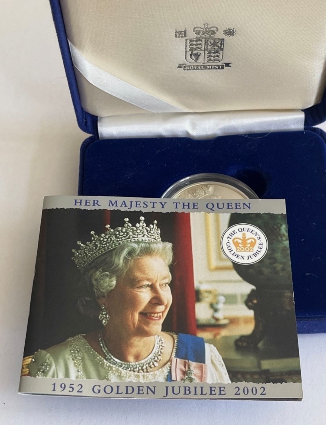 2002 Gold Jubilee silver crown Coin in case by Royal Mint for QEII GB