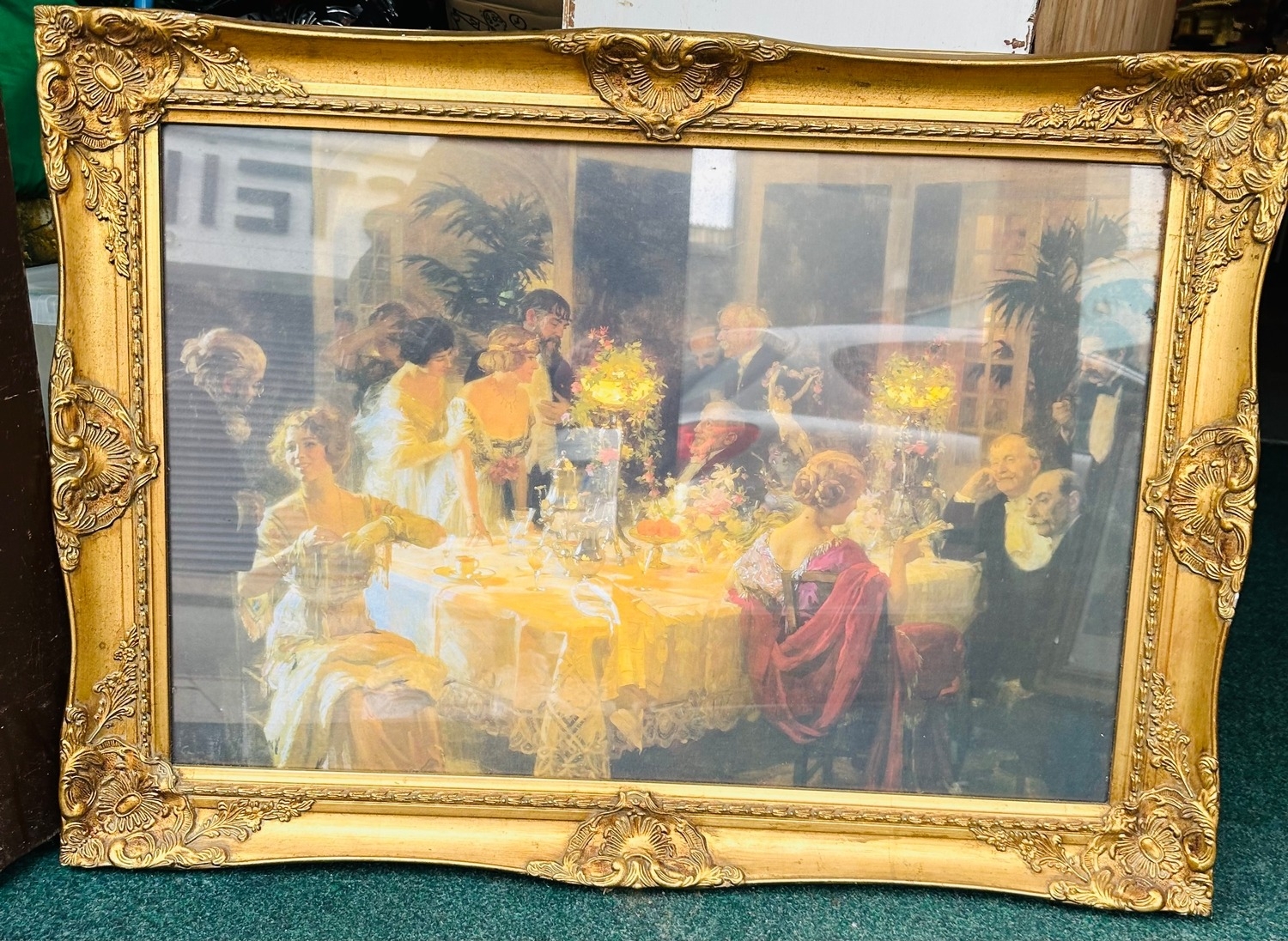Medium / large sized print of Victorian / Edwardian diners in ornate gilt frame with glass. Collection advised as posting will be at the buyers own risk as once sent we cannot be responsible for the handling