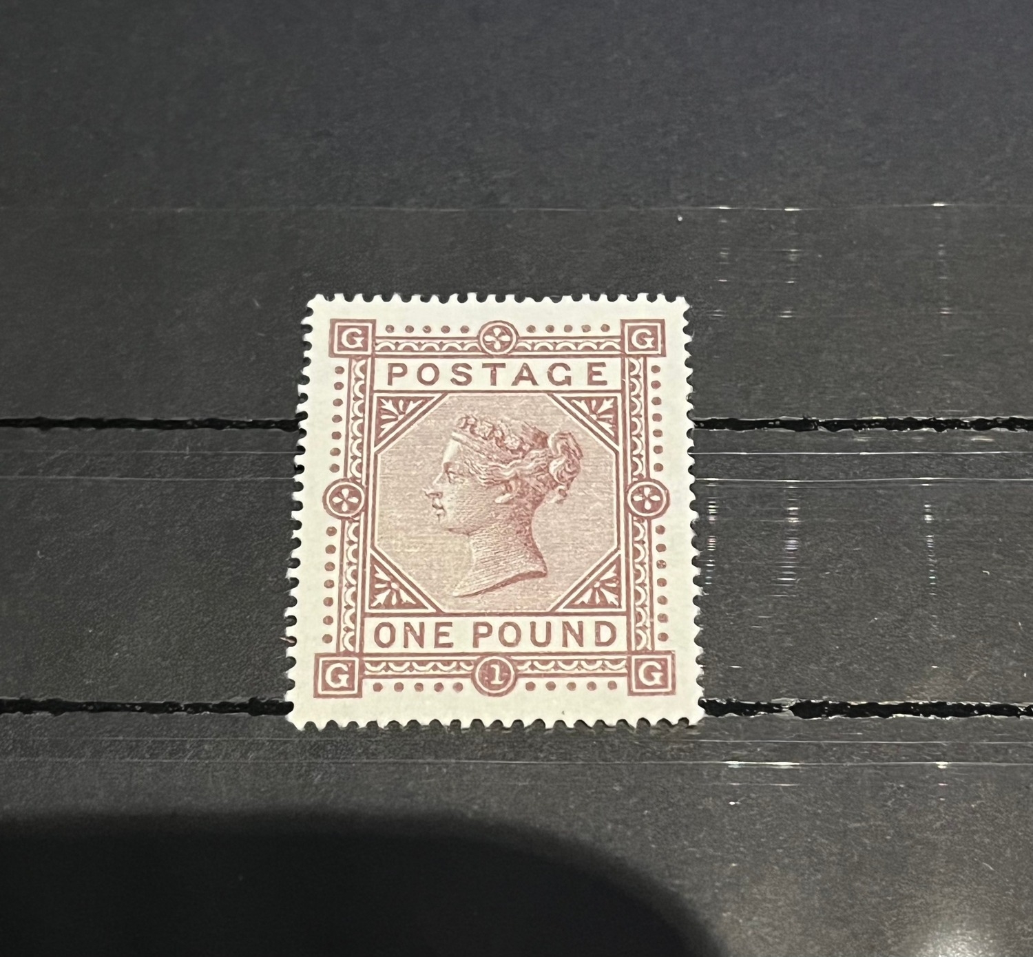 GB mint QV 1867-93, SG129, one pound brown stamp Forgery / facsimile / replica which otherwise would be of high cat value, a/f