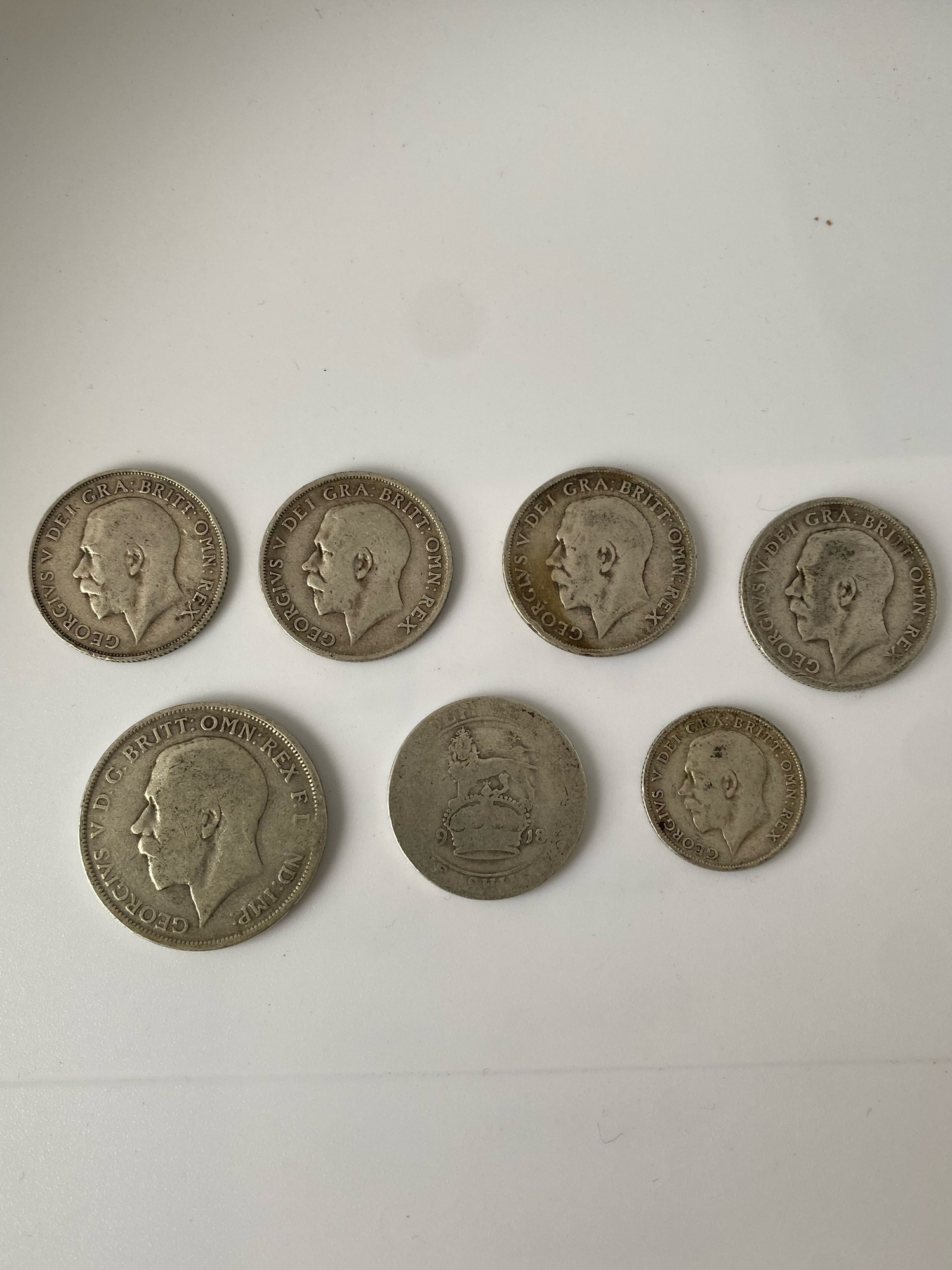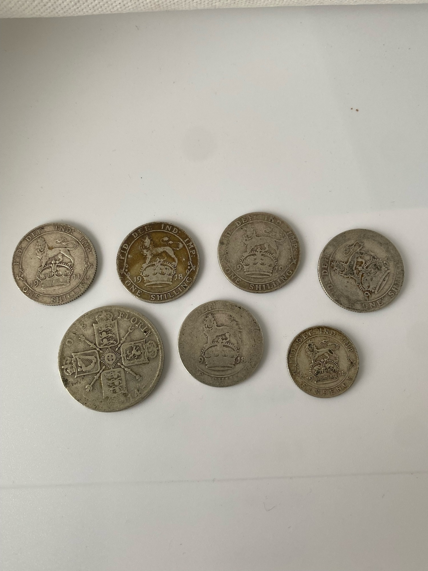 GB KGV 1911-1919 silver coins includes shillings, florin and sixpence