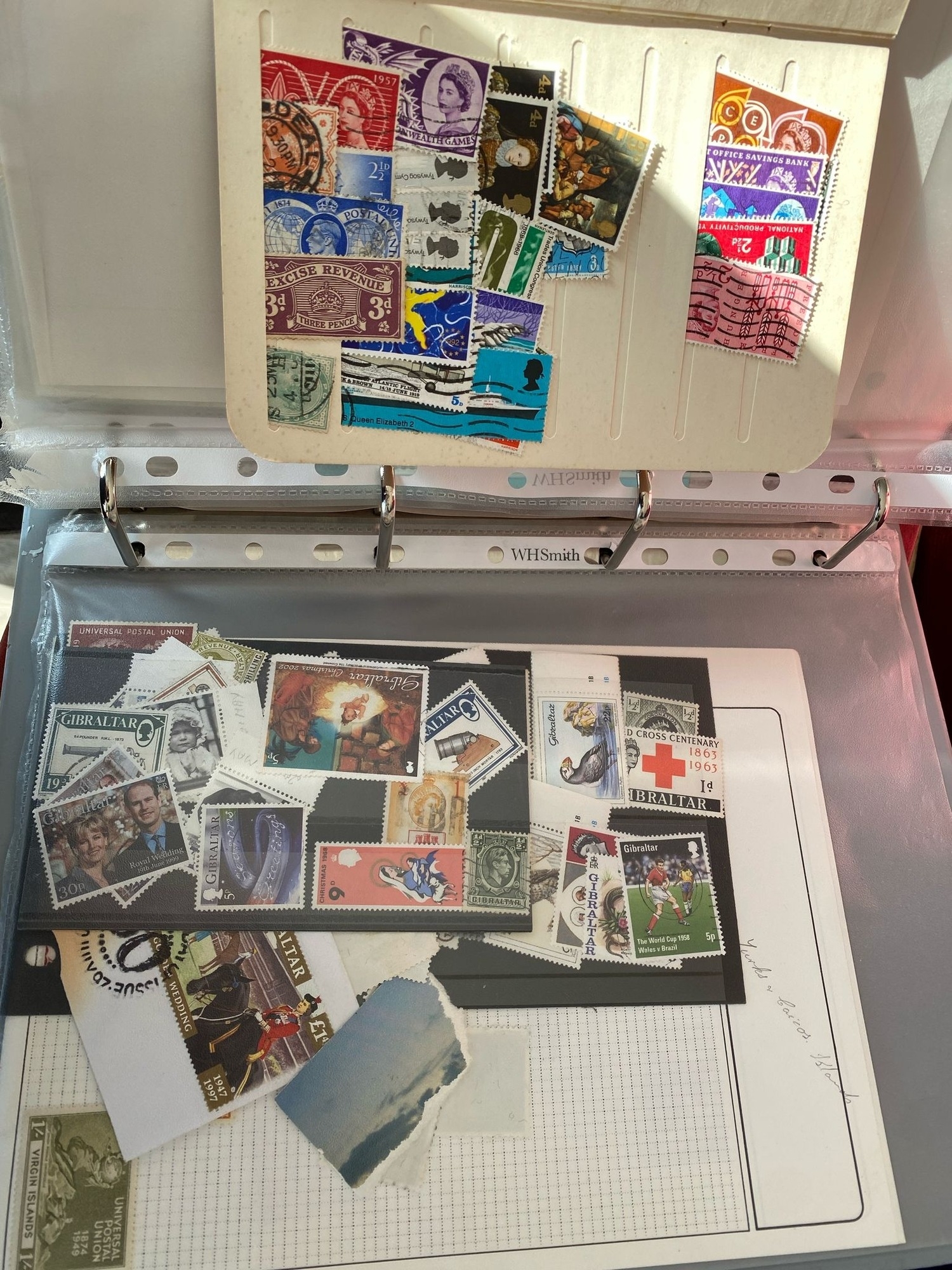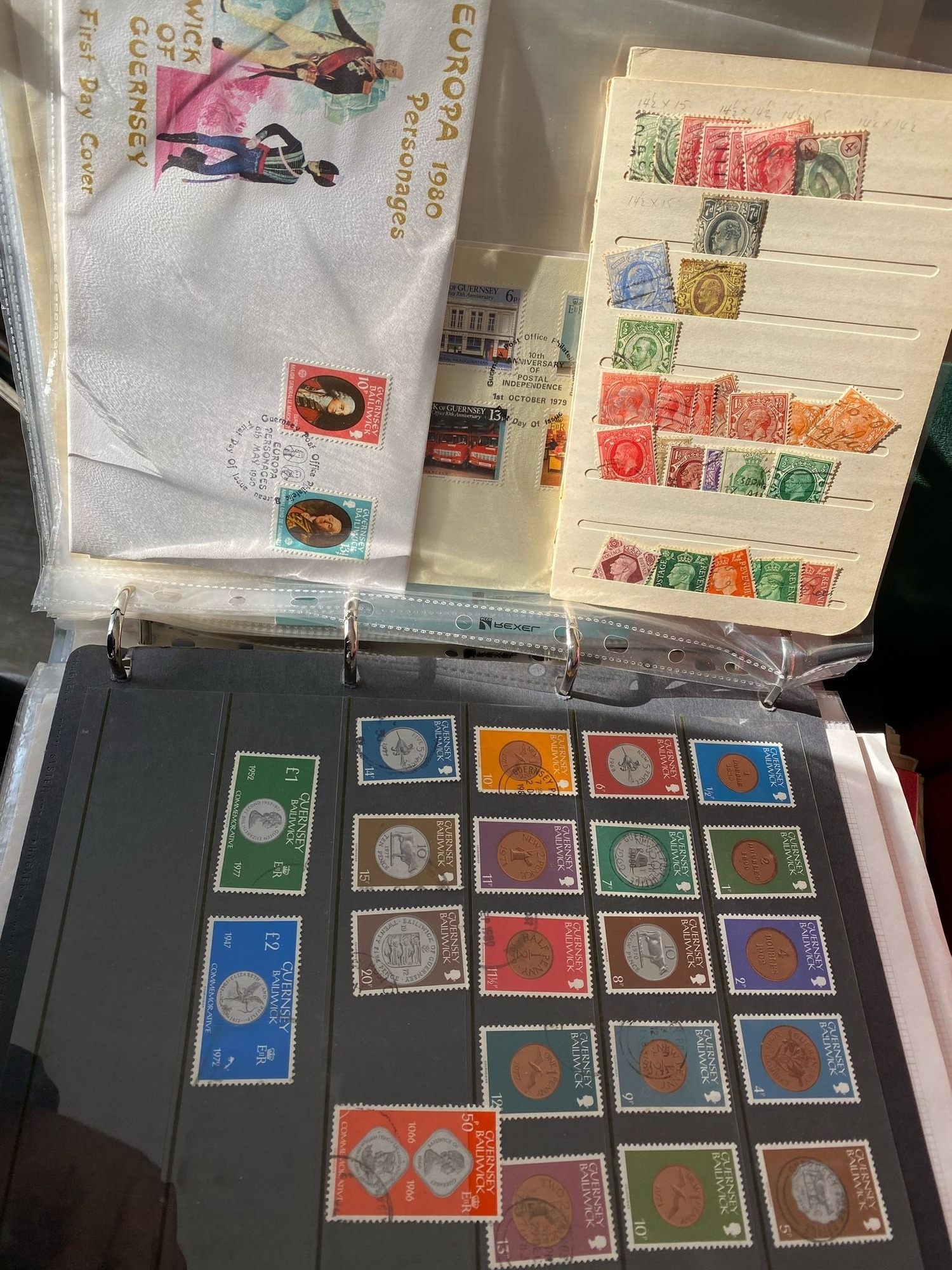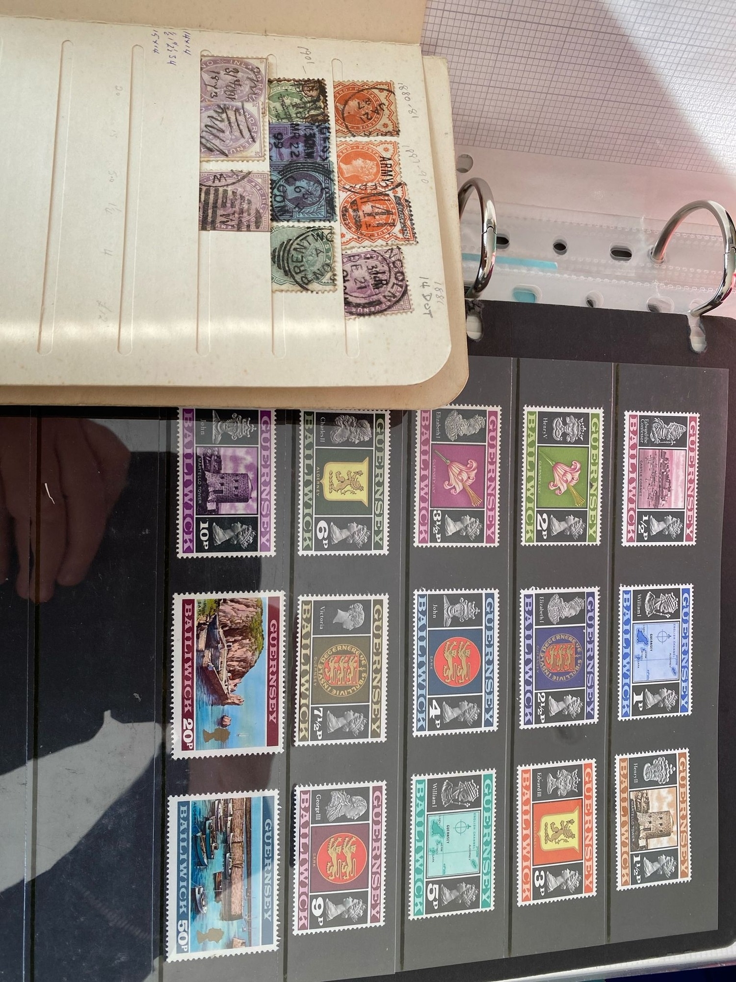 GB, Guernsey and commonwealth stamps in two albums (one a very thin old stamp stock book) of mint and used stamps with a few from QV to QEII