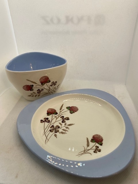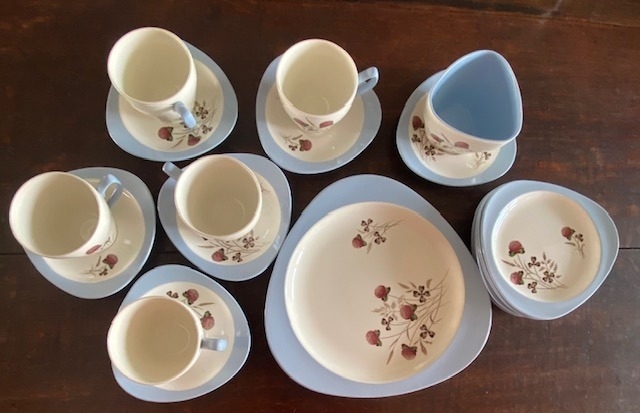 COPELAND SPODE vintage Summer Days S.3304 5 cups and tricorn saucers ( i.e 5 trio sets), spare tricorn saucer, 6 tricorn tea plates, larger tricorn plate, tricorn sugar bowl. no chips