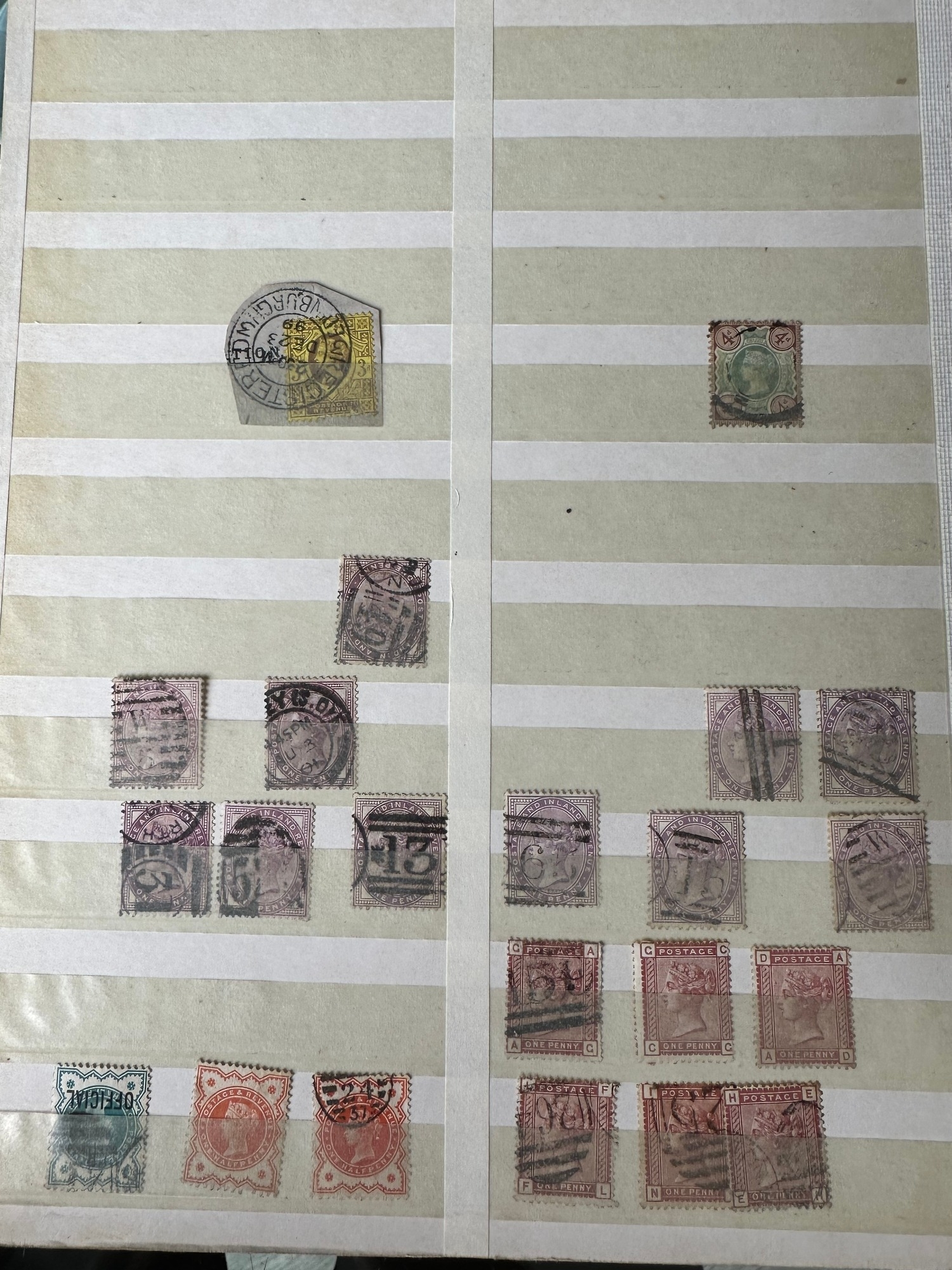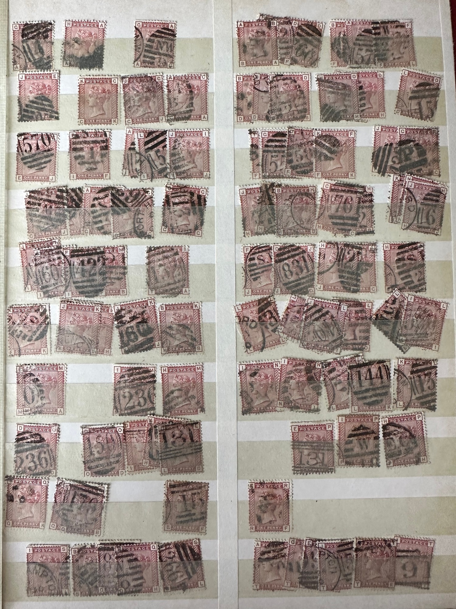 UK GB QV stamp selection on dealer stockleaves c. 1880/81, SG166 High Cat. Value £65 each x 103 totalling £1,545 plus other stamps pictured.