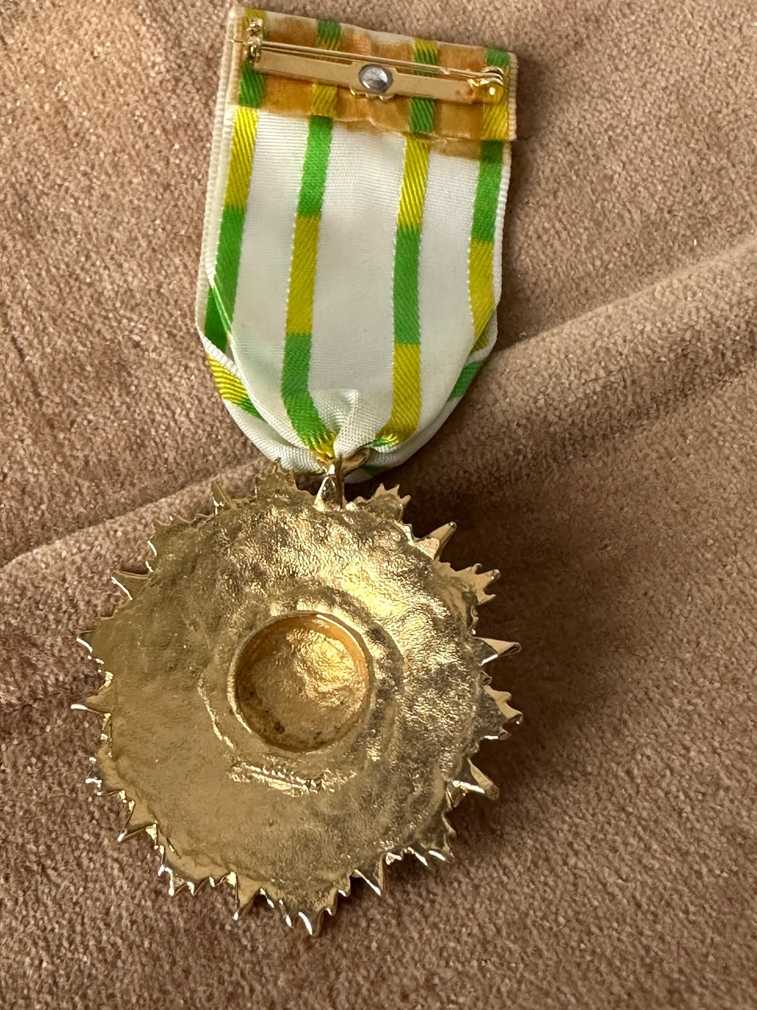 Jewellcraft medal brooch, c 1950’s, vintage gold tone signed jewellery