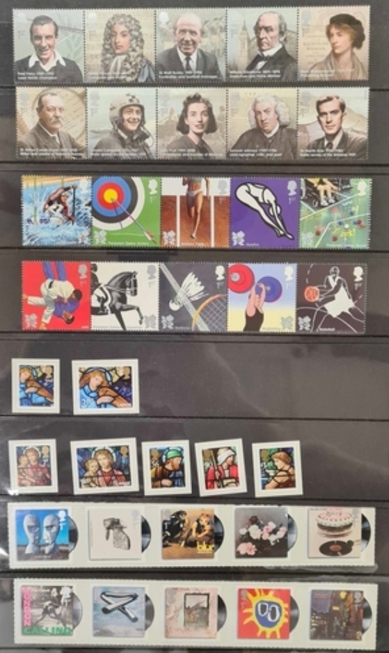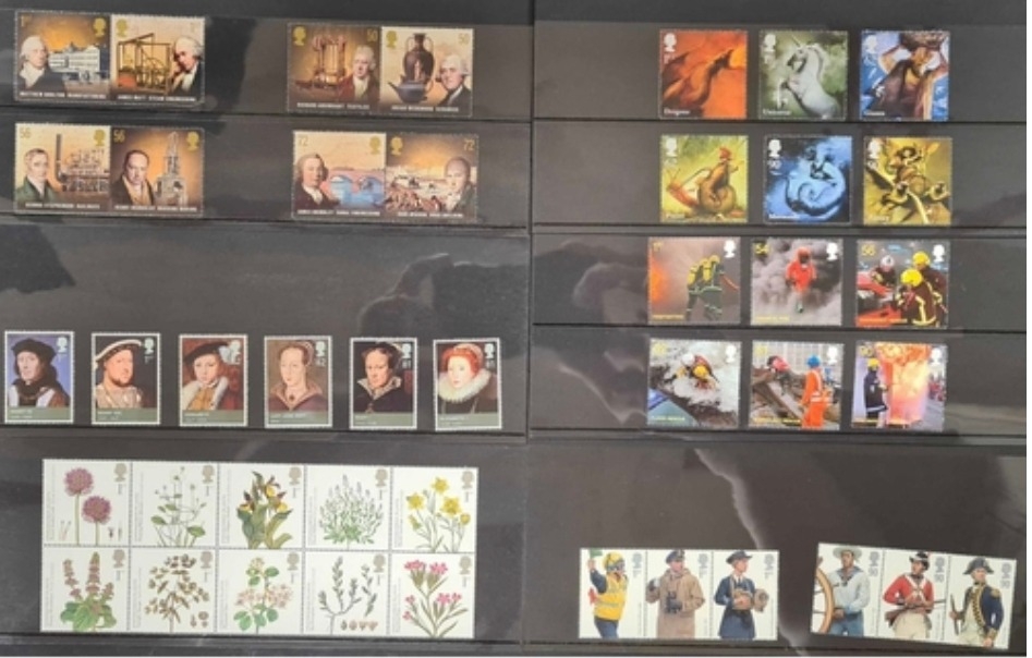 Face Value � 869 GB Royal Mail useable mint commemorative stamps in sets, Special Issue, Christmas etc. on stock cards from 1999 to 2010 all purchased on subscription but may be a small number missing. Includes first and second class commem postage stamps