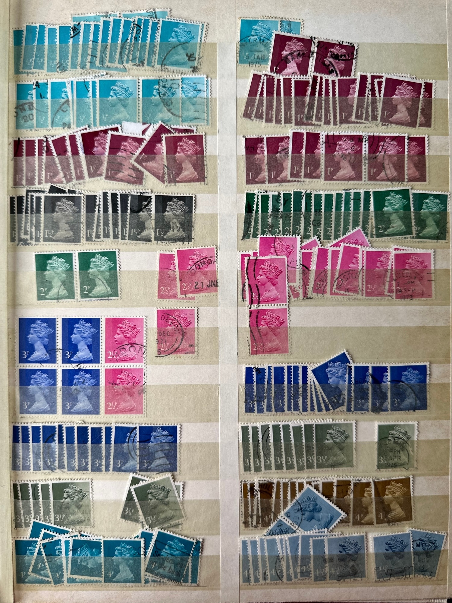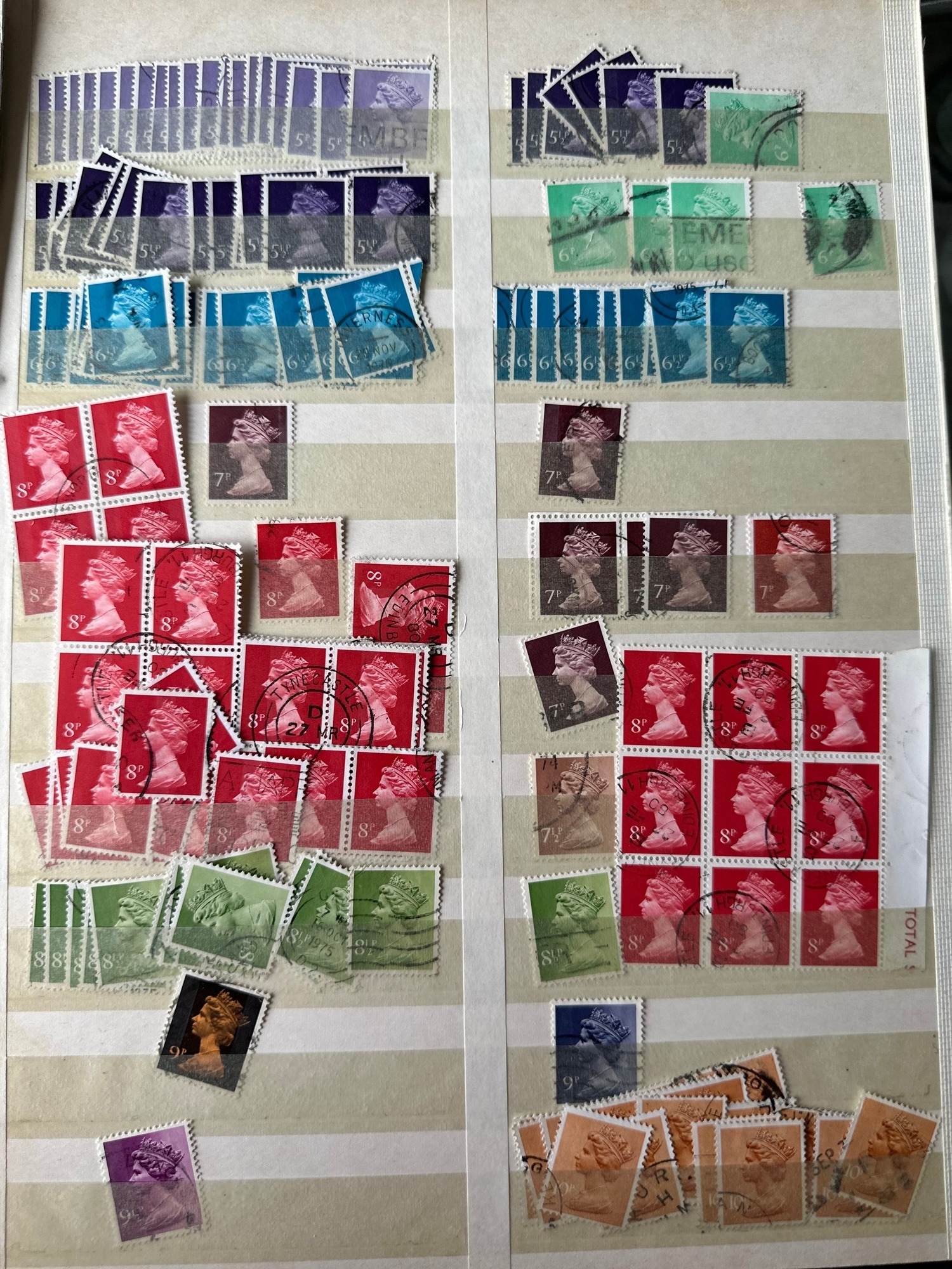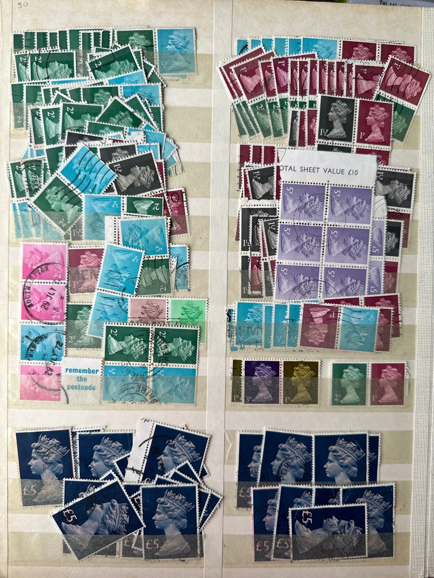 UK GB QE2 Machins stamps on stamp dealer stockleaves including blocks and high values