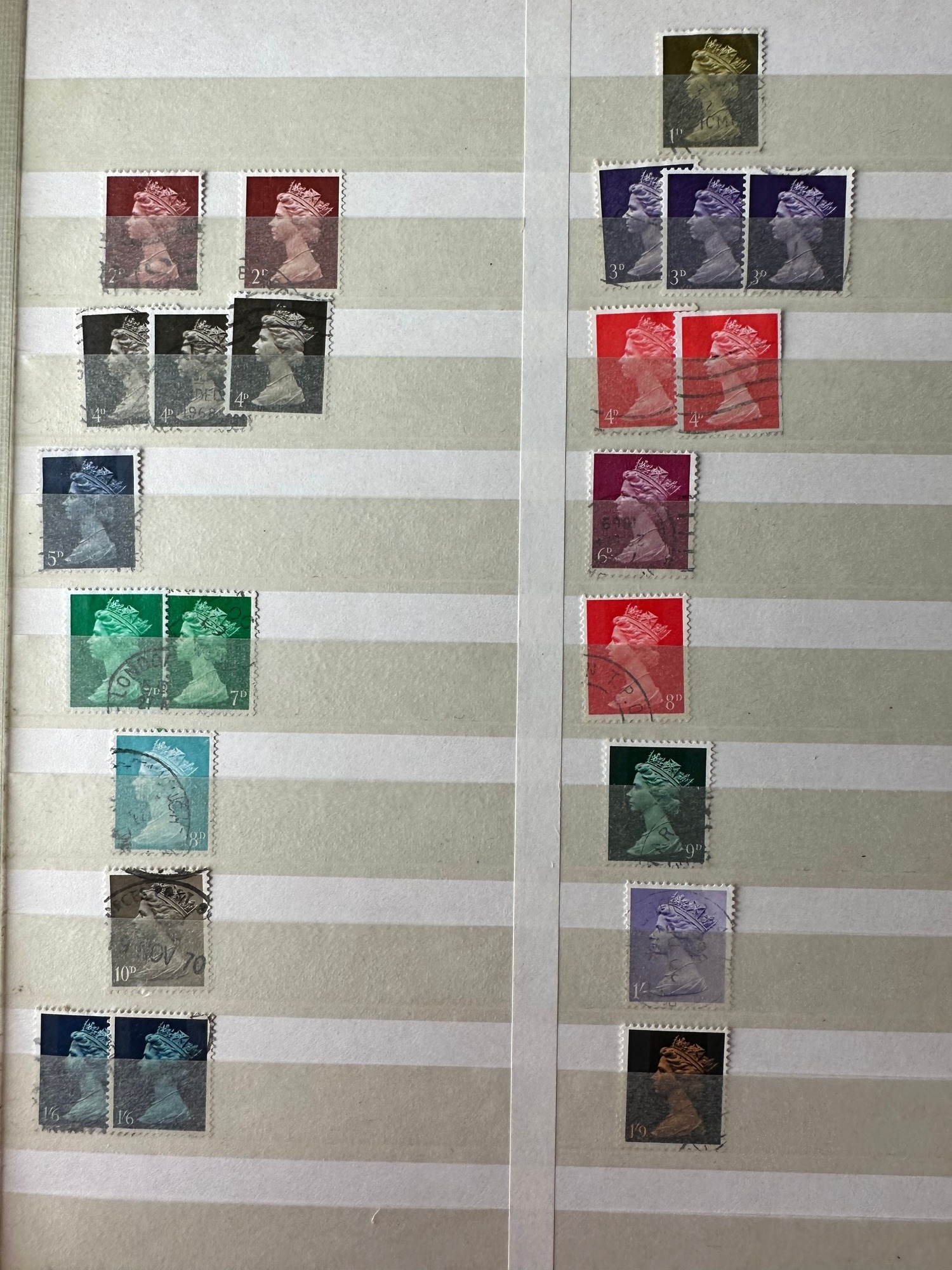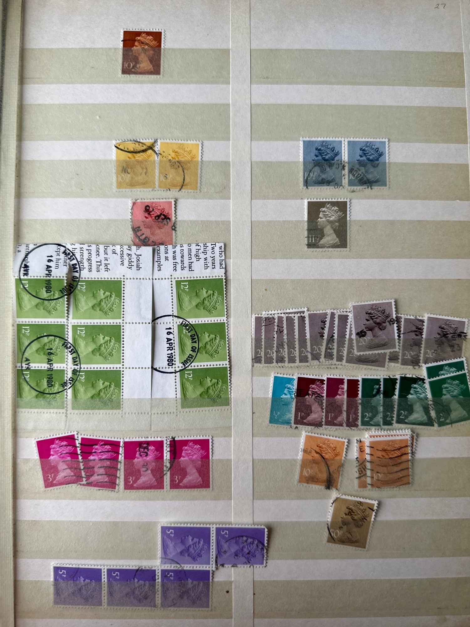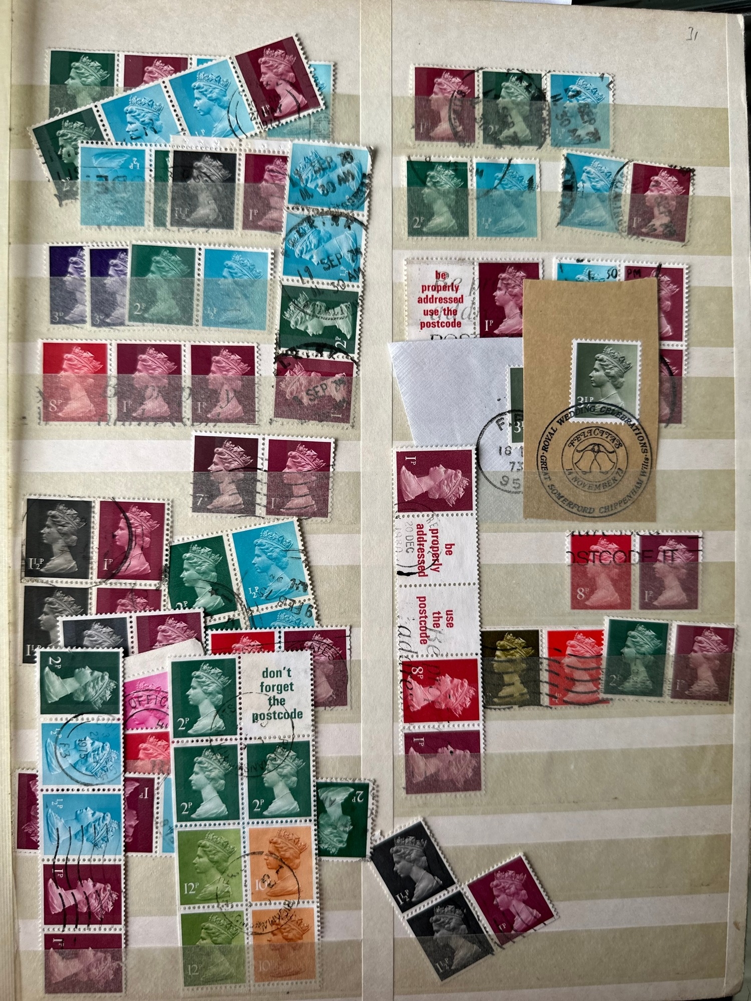 UK GB QE2 Machins stamps on stamp dealer stockleaves including blocks and high values
